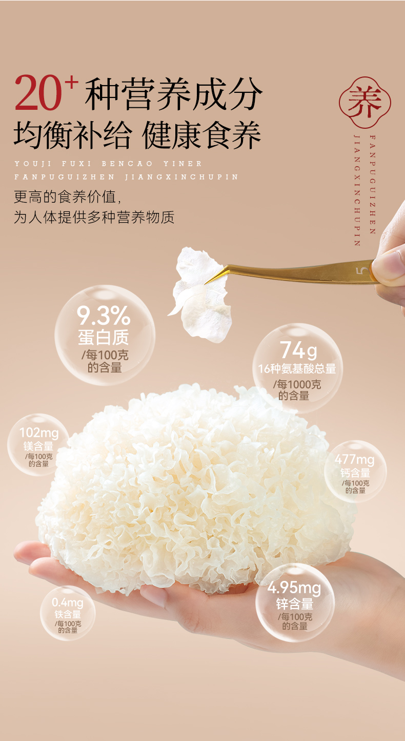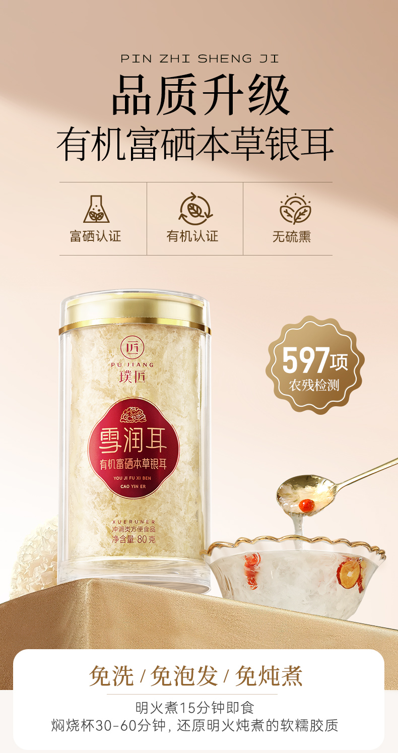 璞匠有机富硒本草银耳干货古田草本银耳碎正品官方旗舰店白木耳