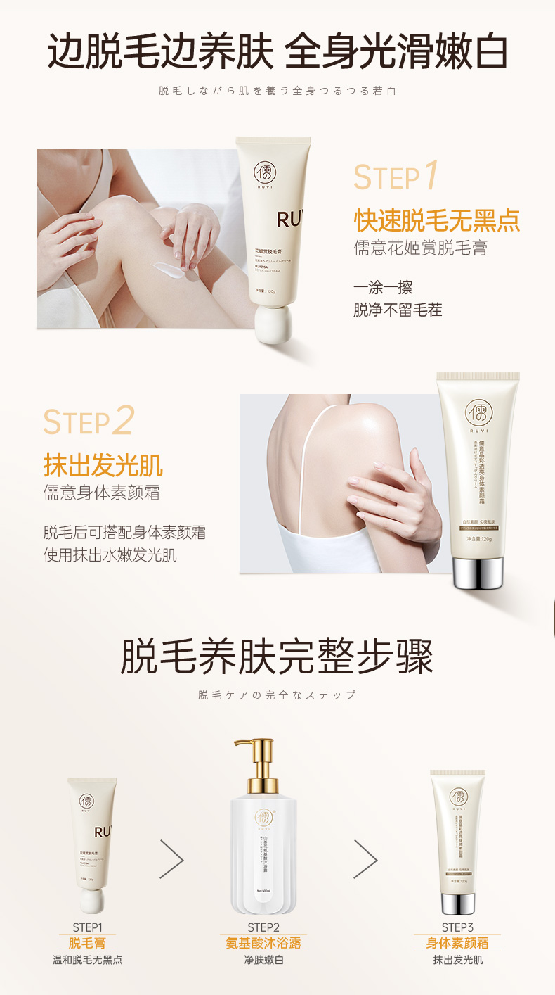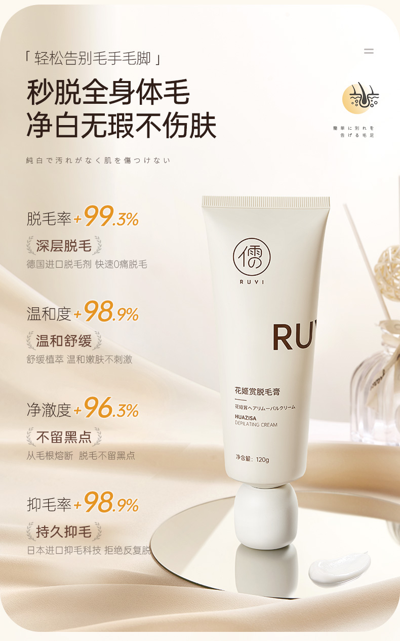 儒意花姬赏脱毛膏120g 全身腋下男女腿毛手毛专用不留黑点男女士脱毛神器 | 儒意官方商城
