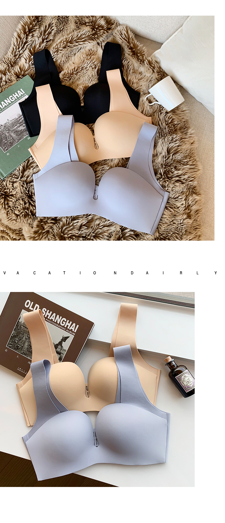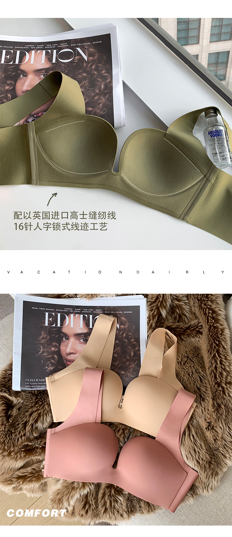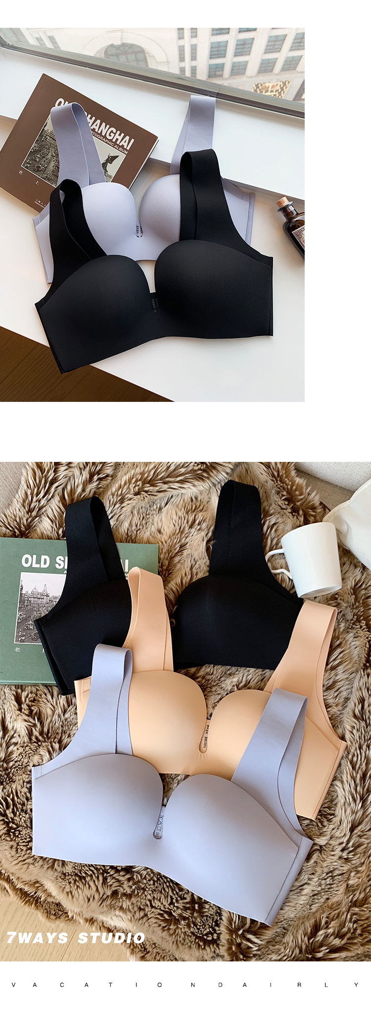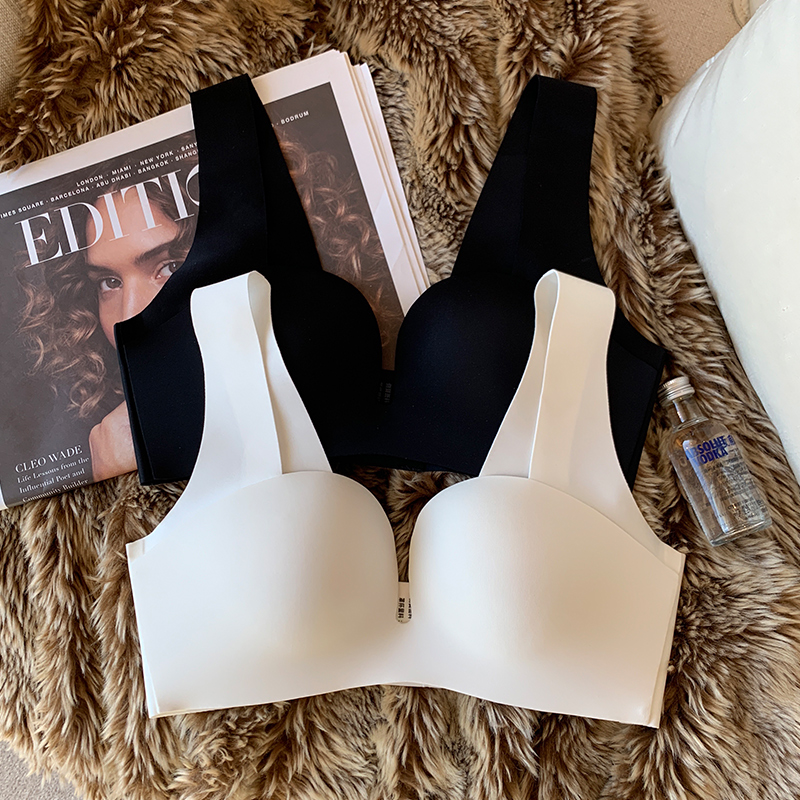 【日本无痕内衣上托聚拢】女士小胸无钢圈调整型上薄下厚一片式文胸罩