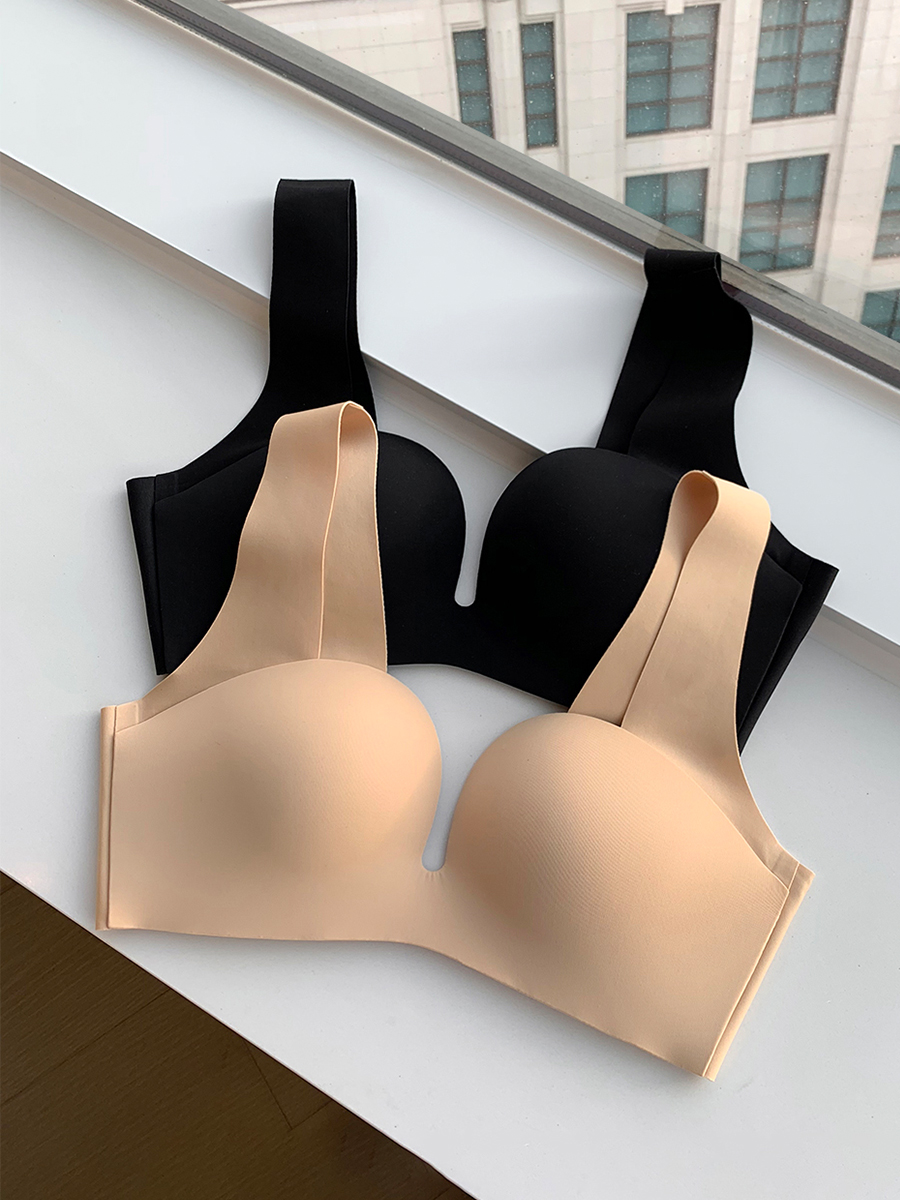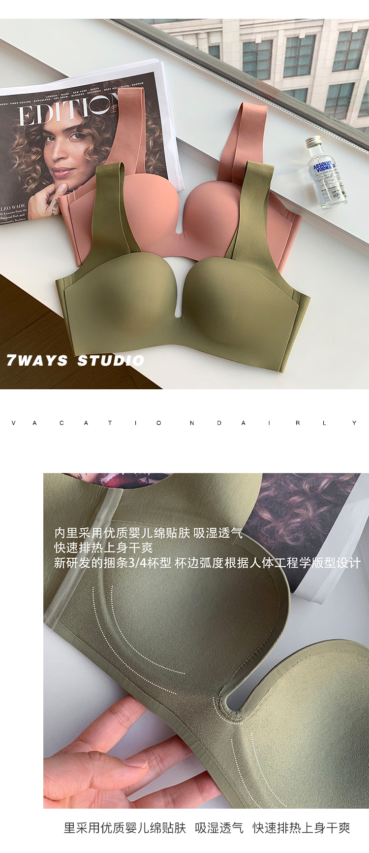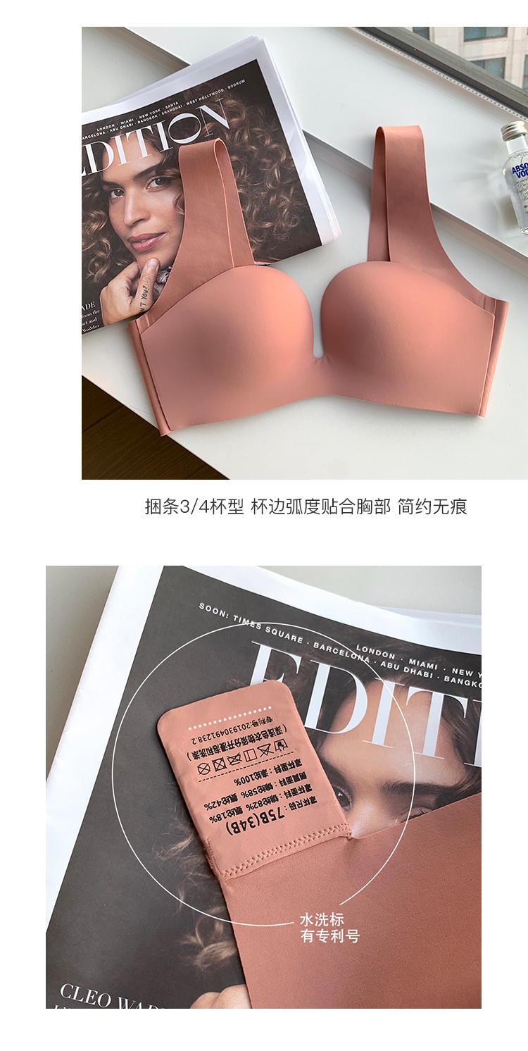 【日本无痕内衣上托聚拢】女士小胸无钢圈调整型上薄下厚一片式文胸罩