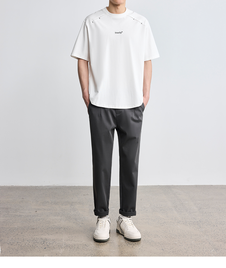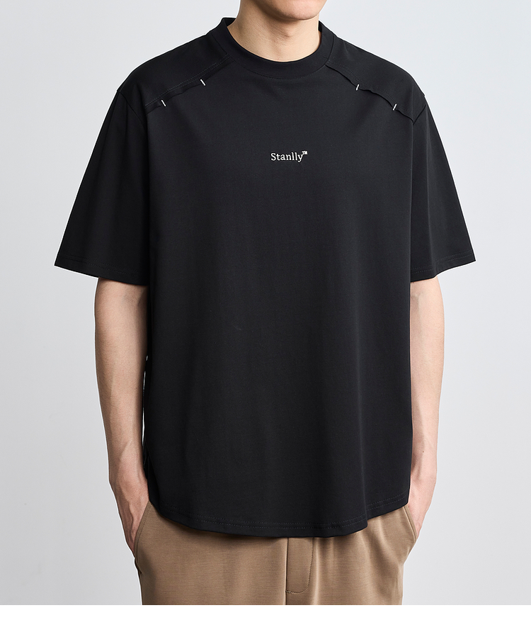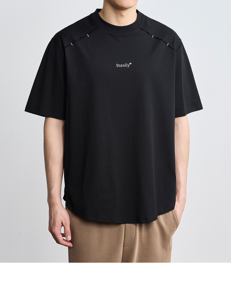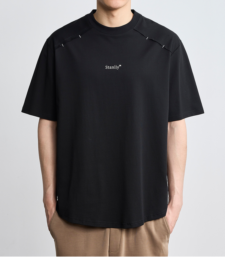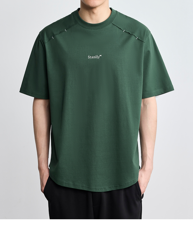 墨麦客男装2024年夏季新款圆领字母刺绣短袖T恤男士休闲上衣71165