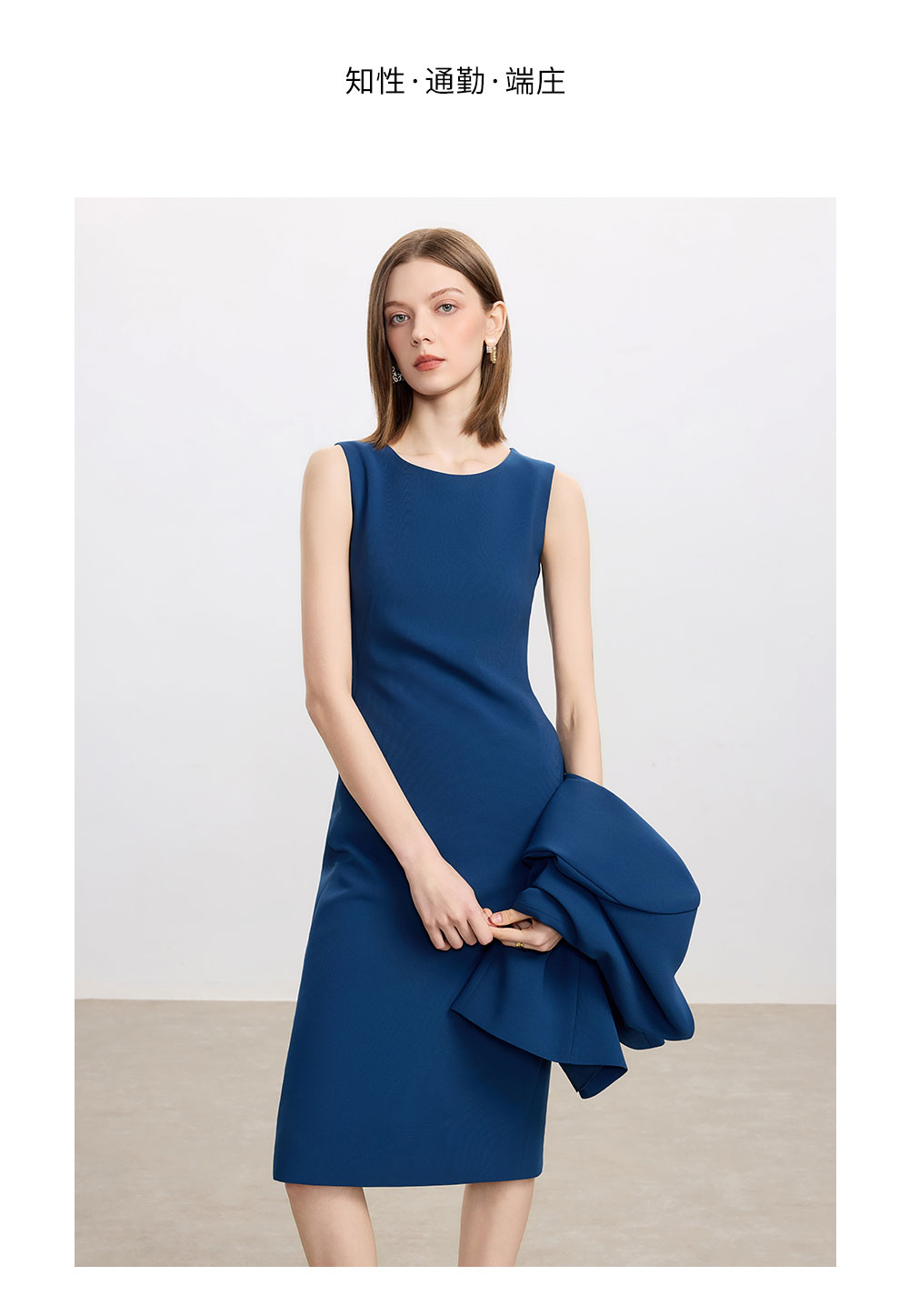 IWY/气质干练无袖连衣裙女高级感蓝色通勤西装内搭职业裙工作服Q1439