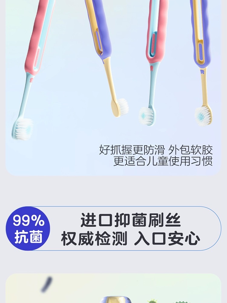 儿童专用宽幅薄刷头倍速牙刷🪥软毛换牙期 口腔清洁6-12岁 进kou 抑jun刷丝!外包软胶防滑易抓握 轻巧省力~