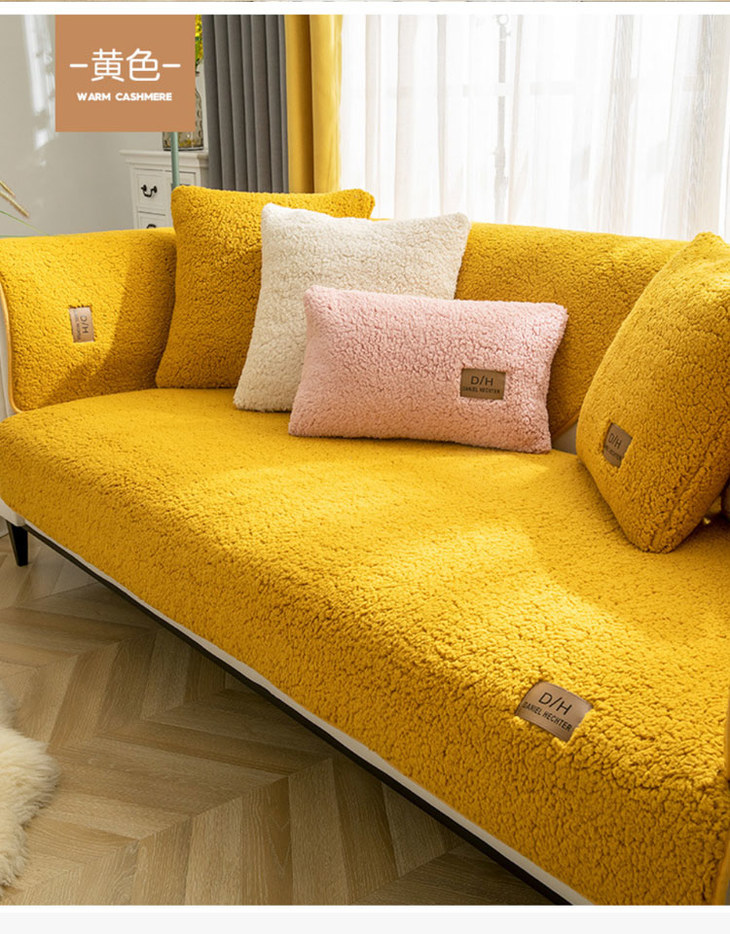 【羊羔绒沙发垫】冬季全新大号加厚毛绒坐垫 简约纯色防滑沙发套罩靠垫