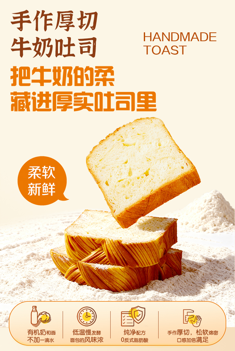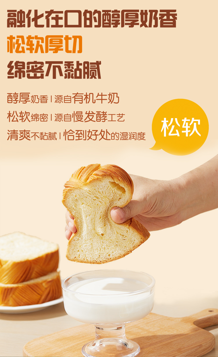 买1送1 圣牧源选手作厚切牛奶吐司320g*2袋 A-5681