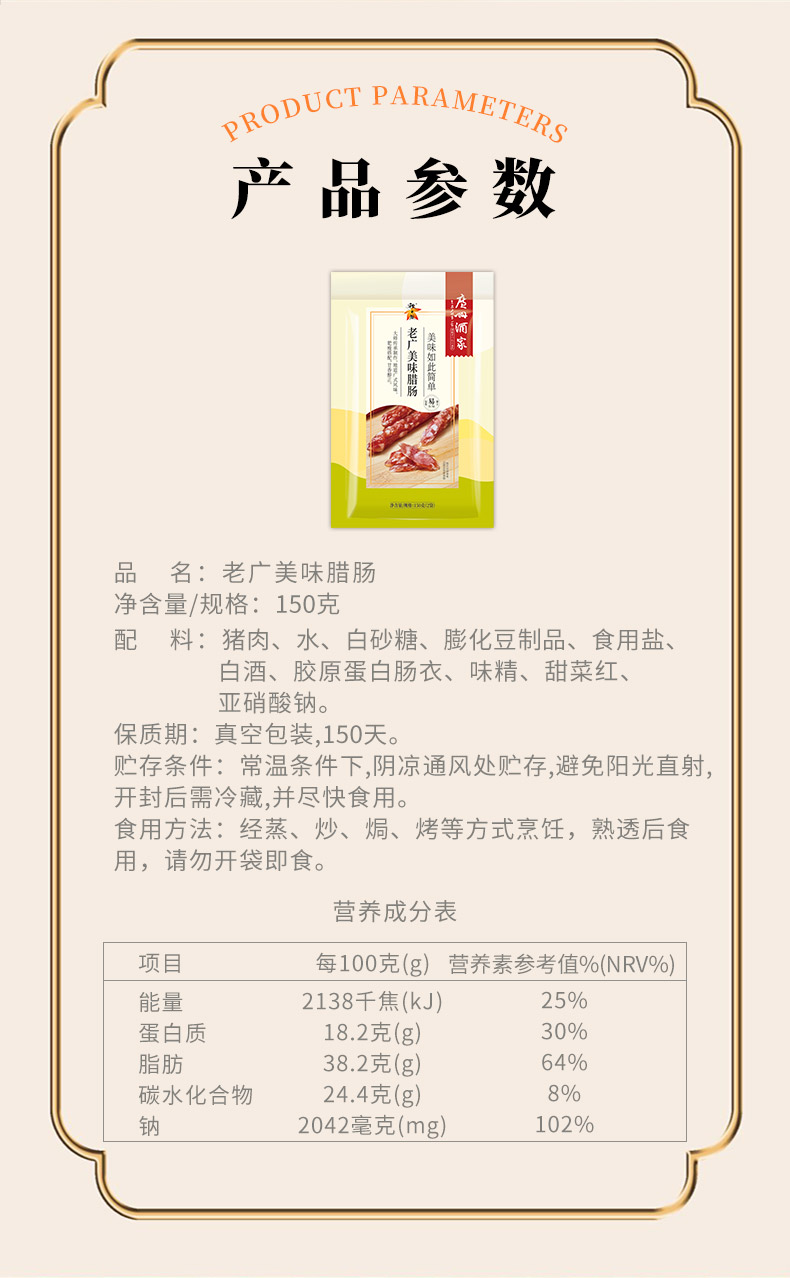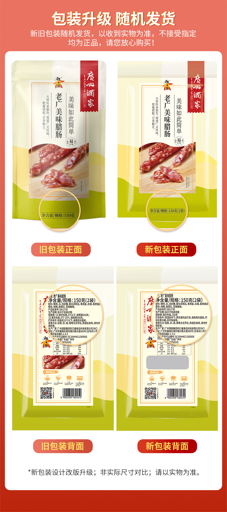 广州酒家 老广美味腊肠150g*3袋广式腊肠秋之风广东腊味送礼手信