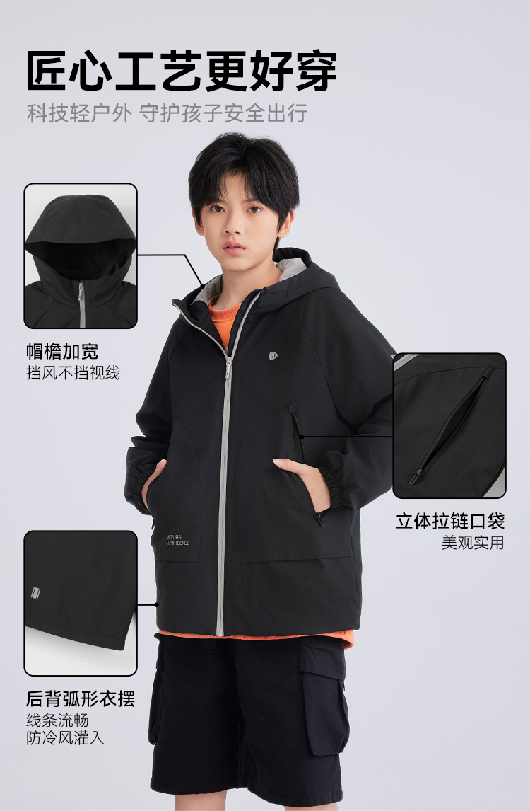 [无氟防水亲子款]水孩儿童装外套女2026春季新款薄绒风衣男童上衣