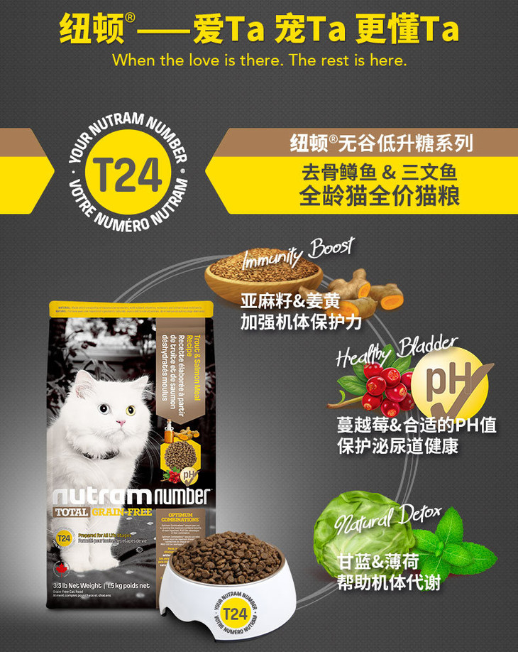 纽顿T24去骨鳟鱼&三文鱼无谷全龄猫粮