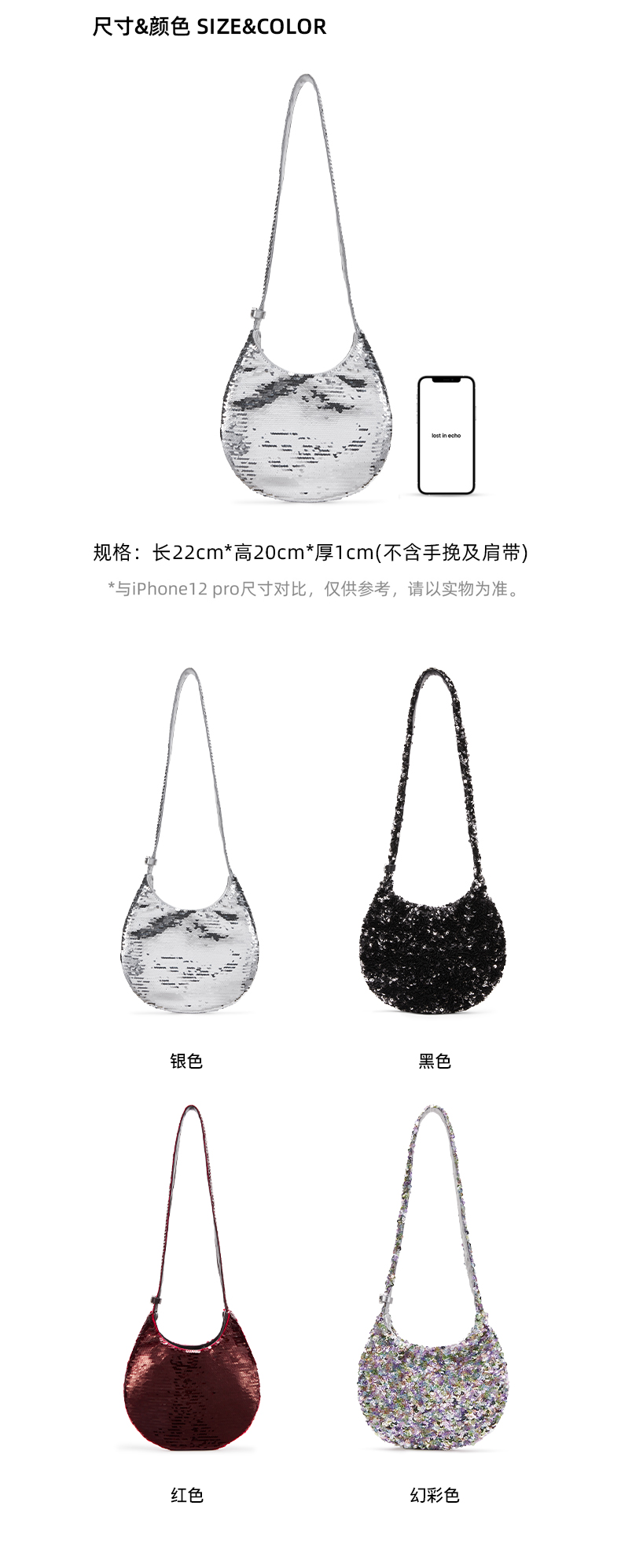 lost in echo设计师款小众新年闪片派对小号水滴单肩包腋下包女