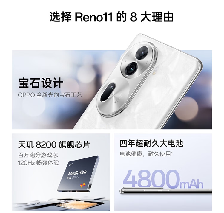 OPPO Reno11 新品5G手机Reno11pro店内可选全网通游戏拍照手机 Reno11 曜石黑 8GB+256GB 官方标配
