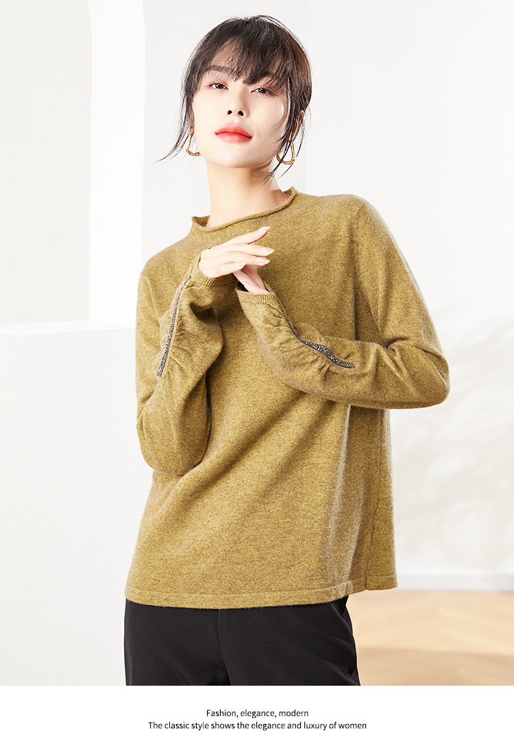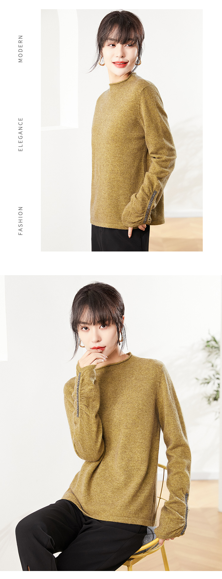 秋季新款 灰色绿色时尚百搭牦牛绒羊毛衫女E14MS14