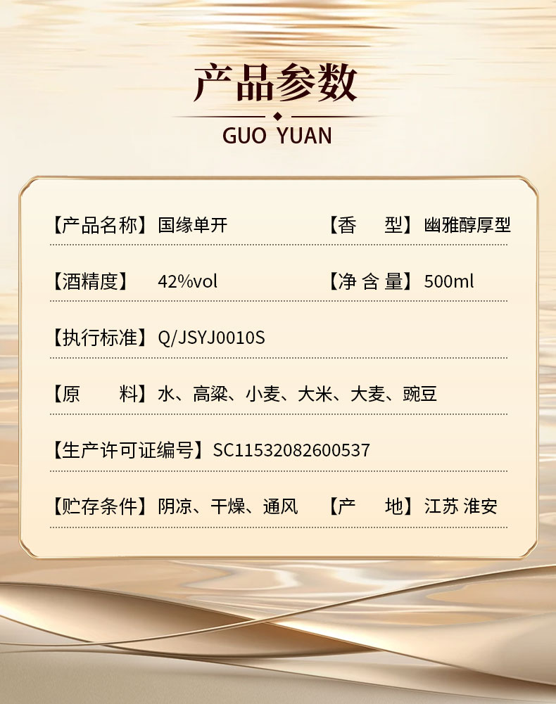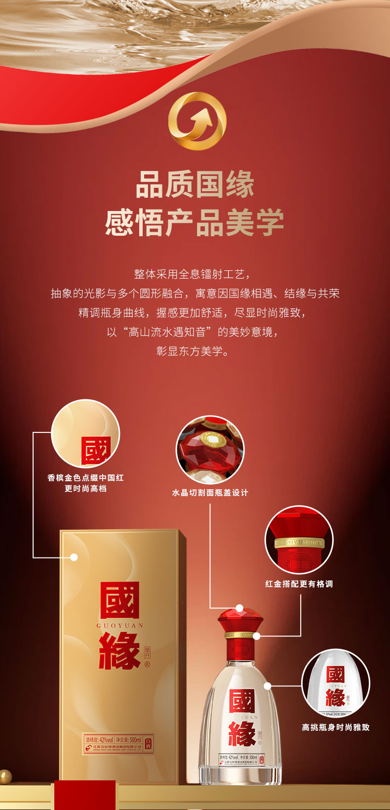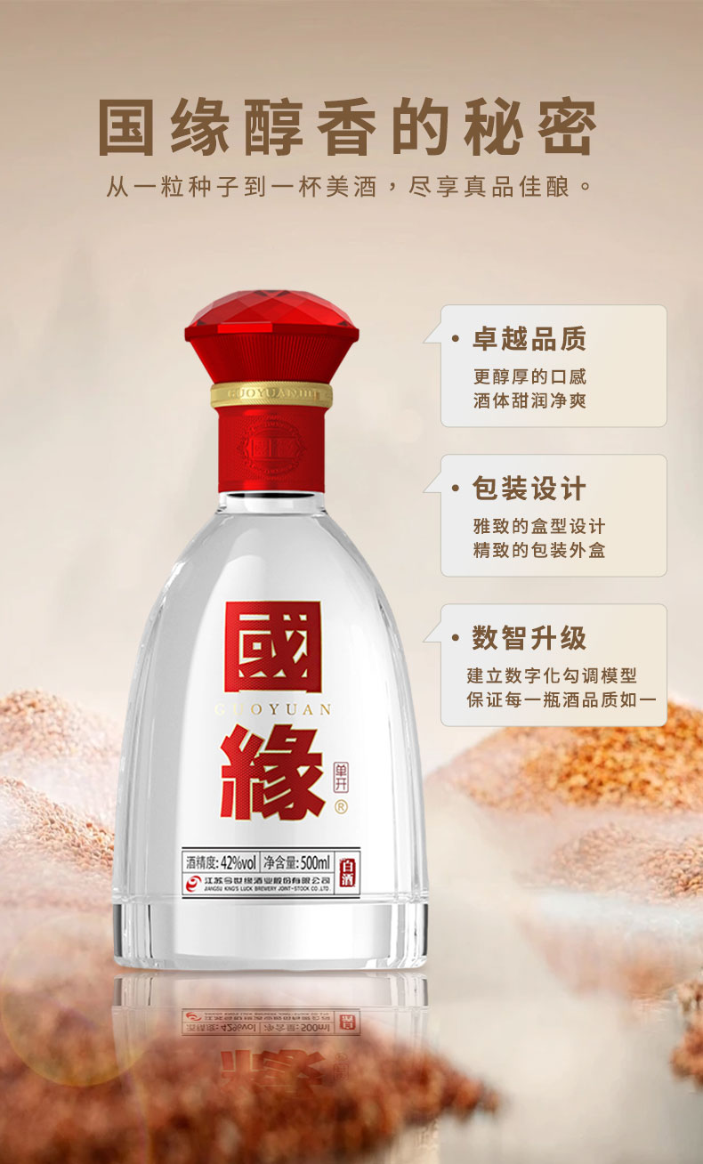 【酒厂直营】国缘白酒 单开升级版 42度500ml*6瓶 整箱装
