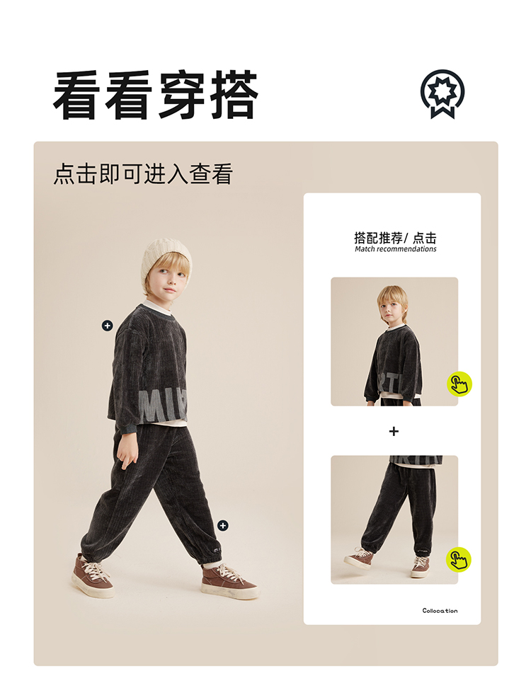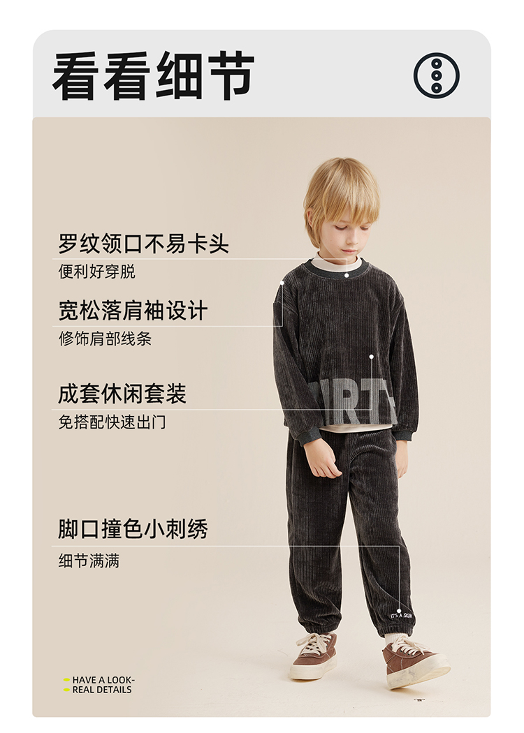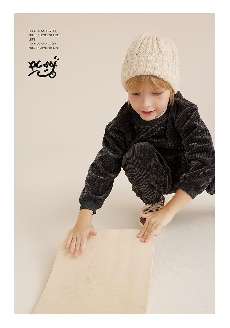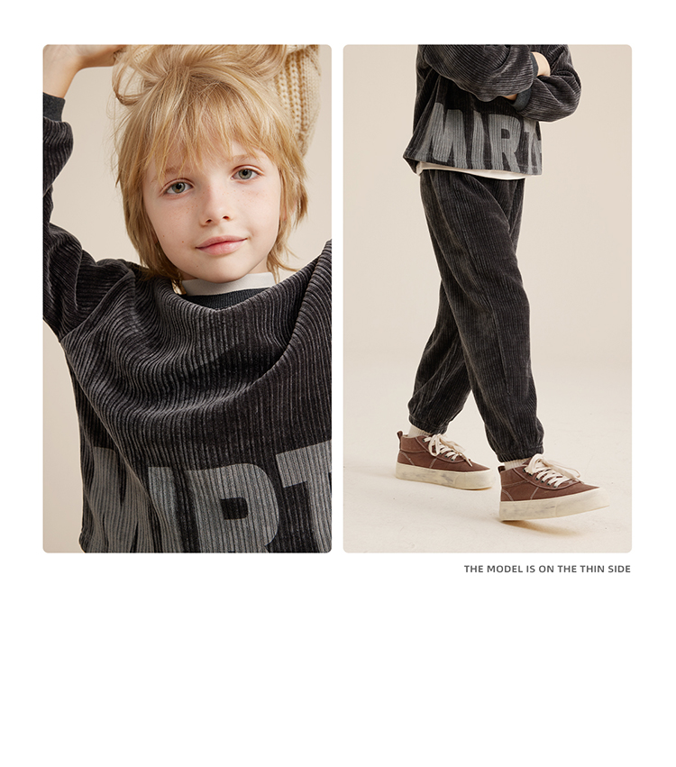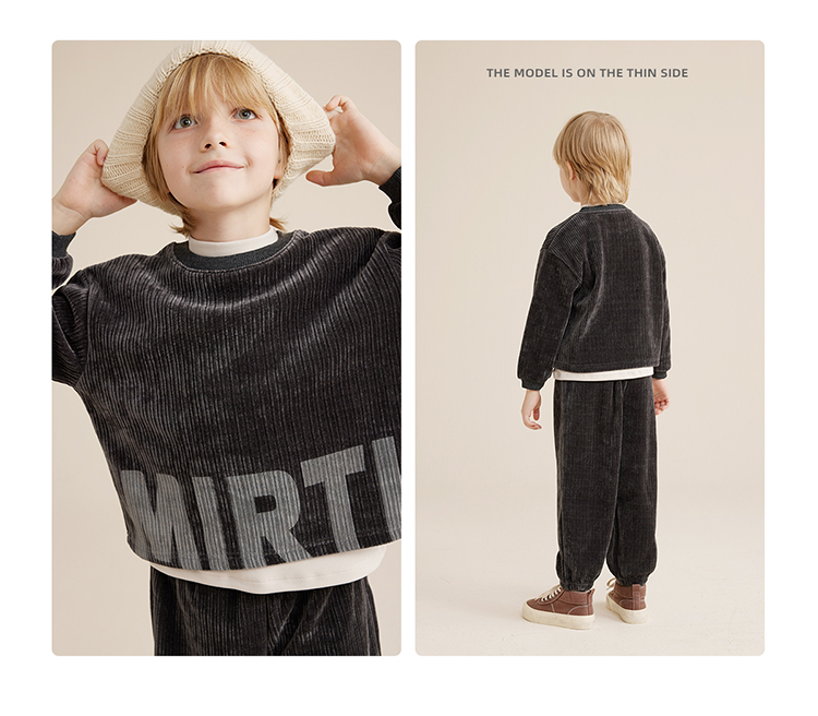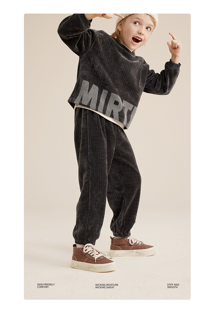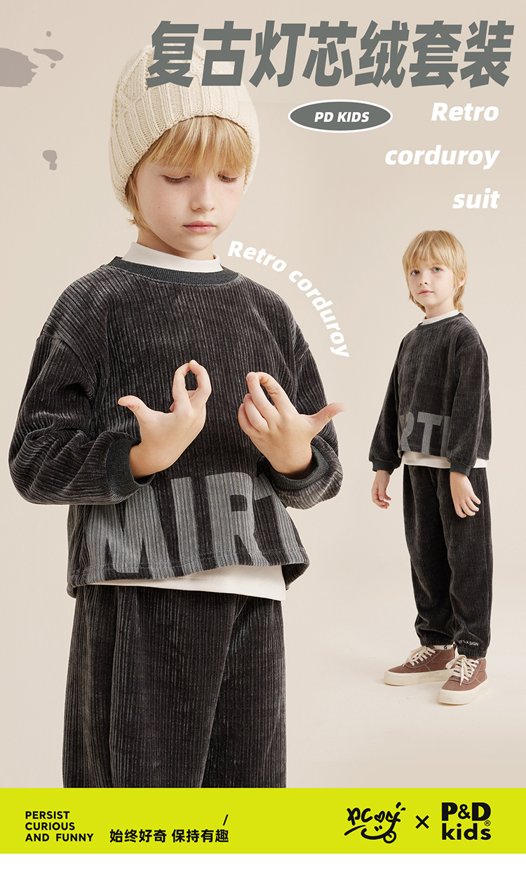 【柔软灯芯绒】儿童复古灯芯绒休闲印花套装PQTZ2304