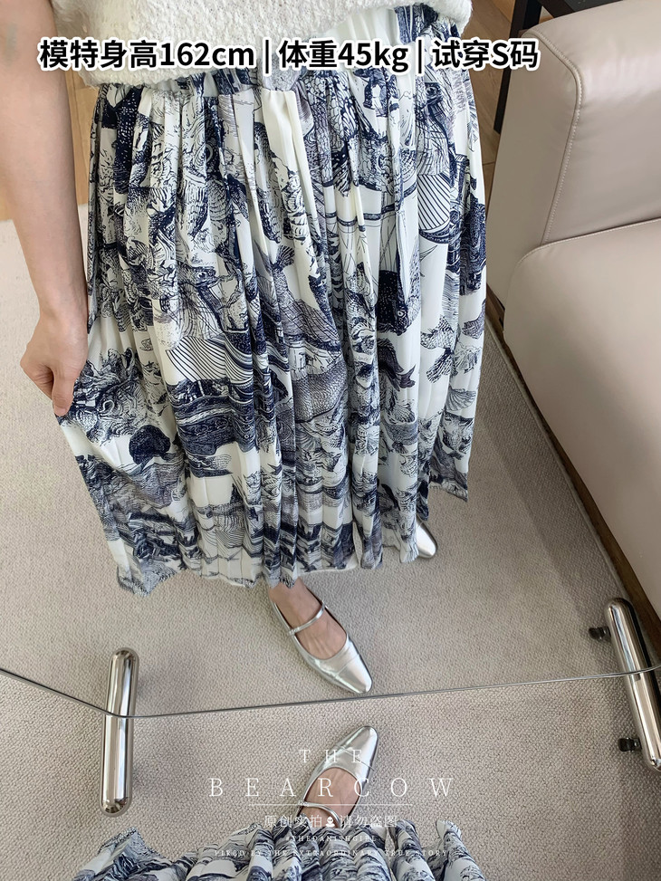 超级无敌巨百搭 无论你搭什么上衣都是超好看的 如诗如画,灵韵十足 面料近看浮雕质感绝了,自带篙级感~