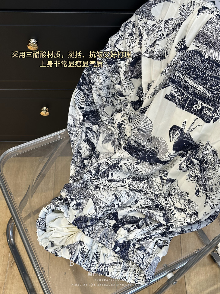⭕️⭕️面料为D*or同款定制印染面料 柔软细腻❗️自带挺括感~制作工艺上就十分复杂 D家我们都知道,一条半身裙都要卖五位数啊哈哈💥 墨染的色调真的要时髦炸裂! 自带艺术🎨氛围肌理感 手感清凉亲肤!