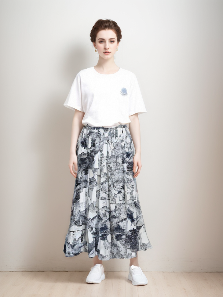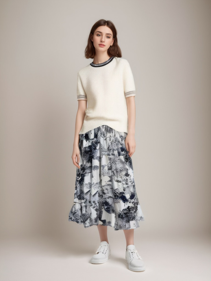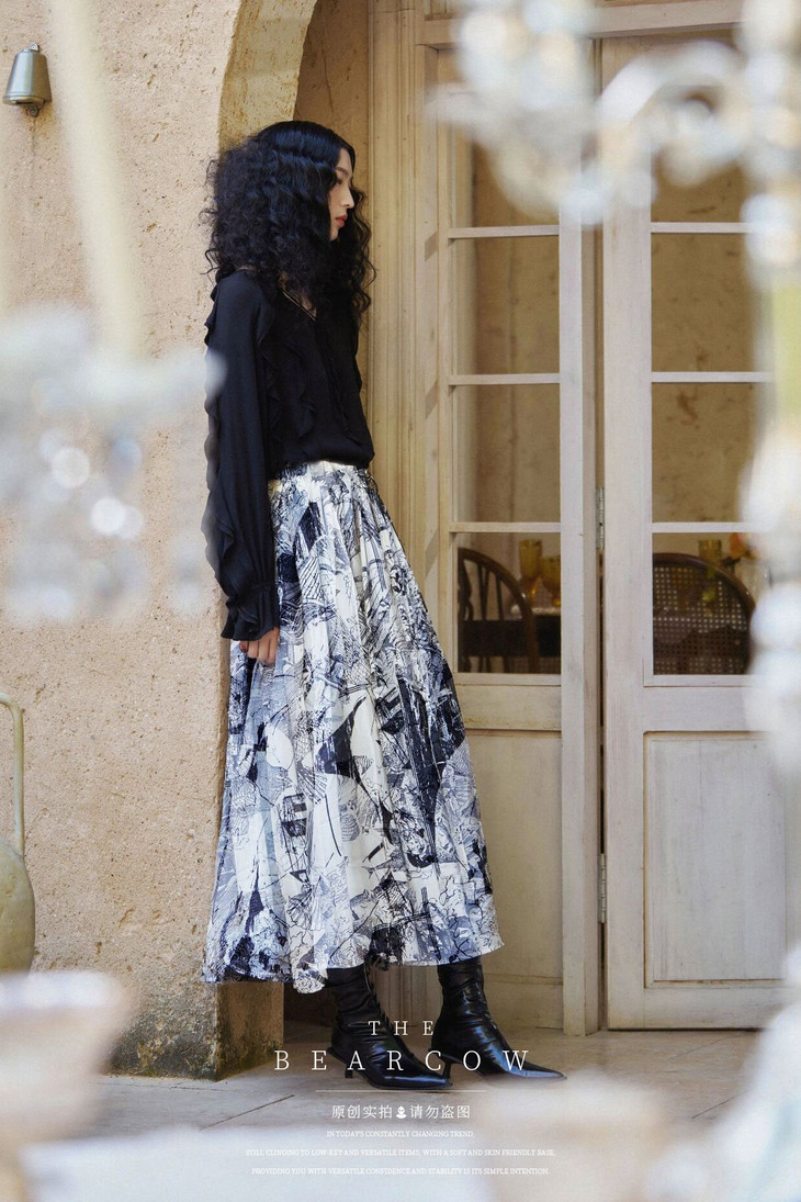 一条文艺气息十足的水墨半裙 清冷感氛围直接拉满❗️ 出行来上一条妥妥的人群视觉焦点 非常吸晴 水墨复古这类的单品 放在衣柜不管多久都不会过时yyds 关注时尚的会发现 今年D*or就是主打这种森系的水墨系列 超级有气质 超级大牌⚠️ 丰富但不复杂 搭配一年三季任意纯色上衣都很搭