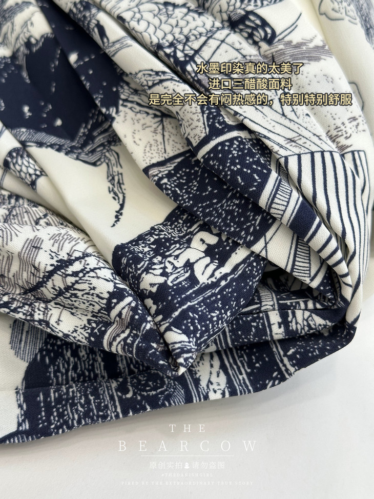 ⚠️不限制身材 水墨印染真的太美了 进口三醋酸面料,是完全不会有闷热感的,特别特别舒服 无敌垂感,上身飘逸灵动,凉爽舒适 就是专门为夏天而制作的⚠️ 宽松版型,任何身材的人都可以穿