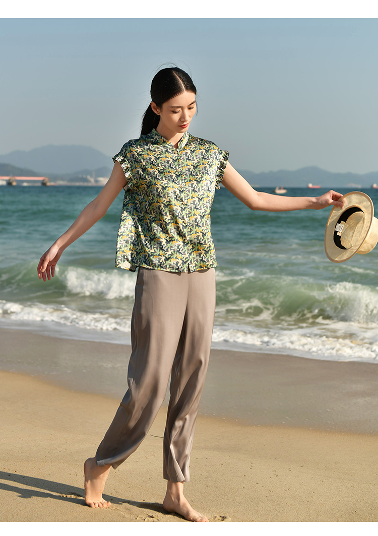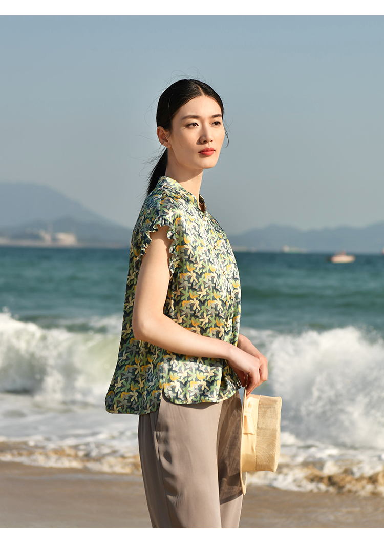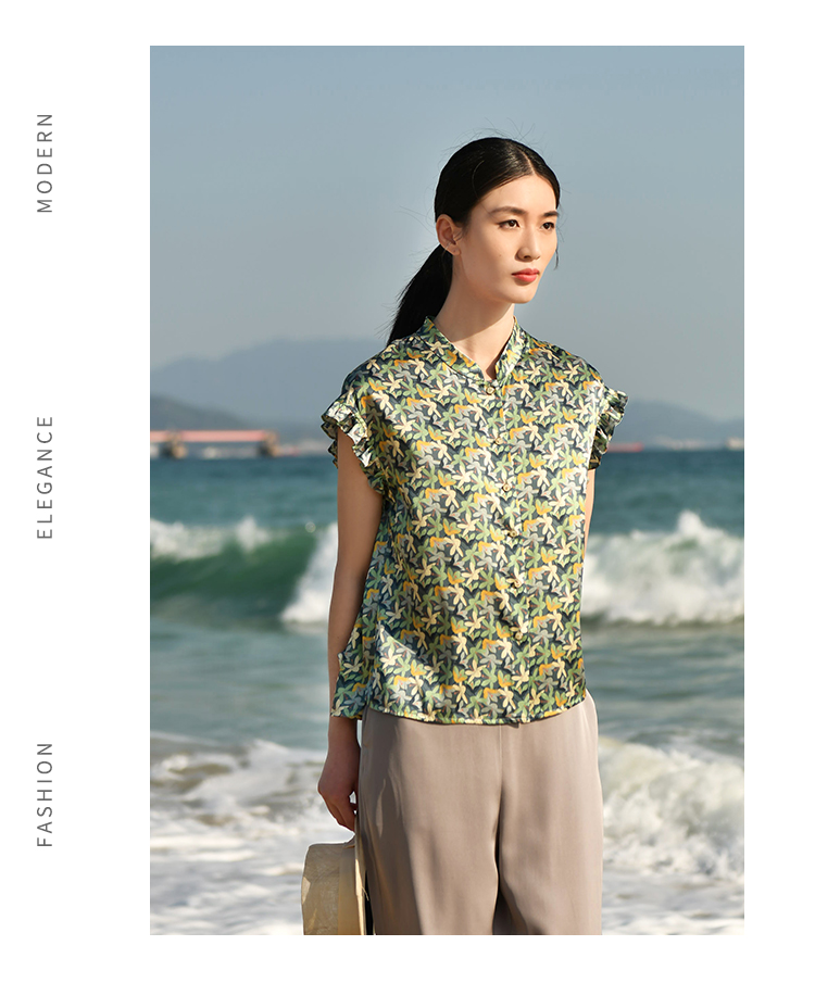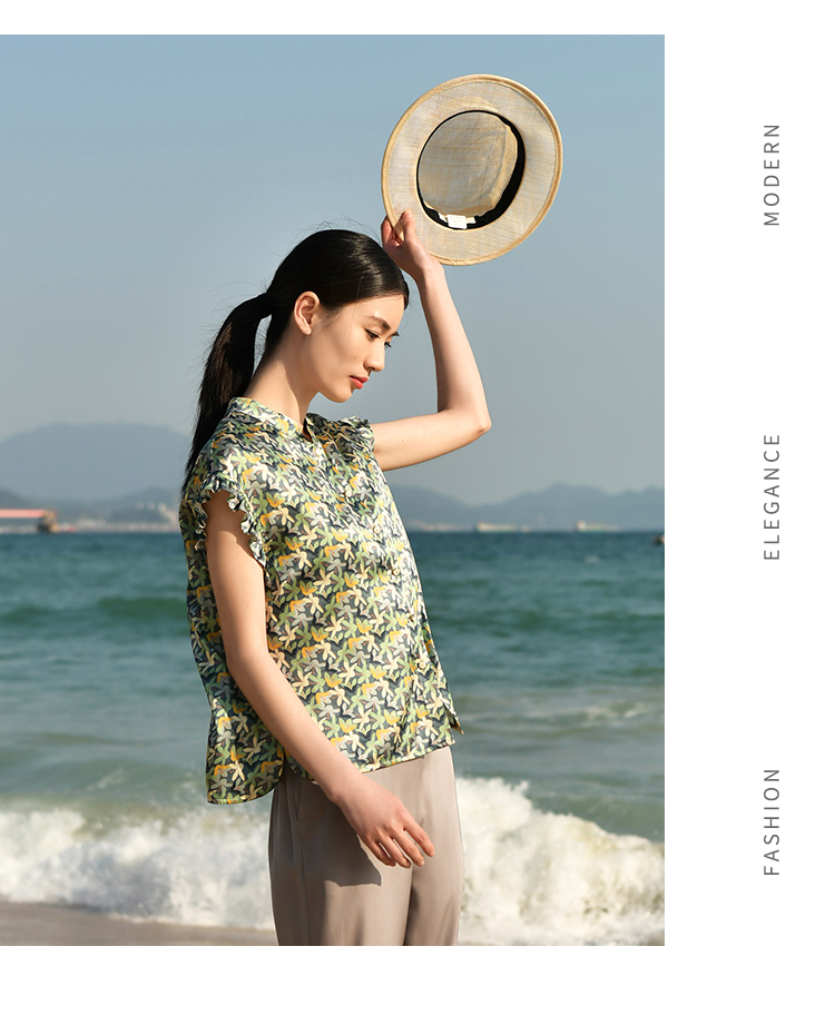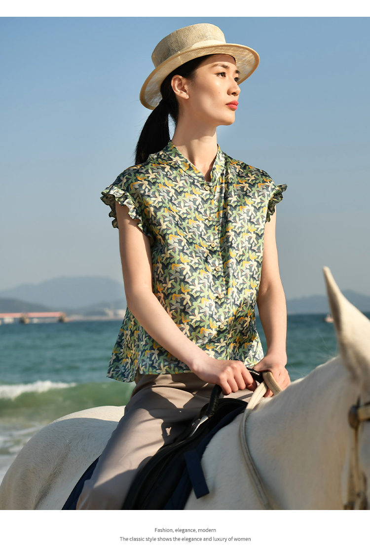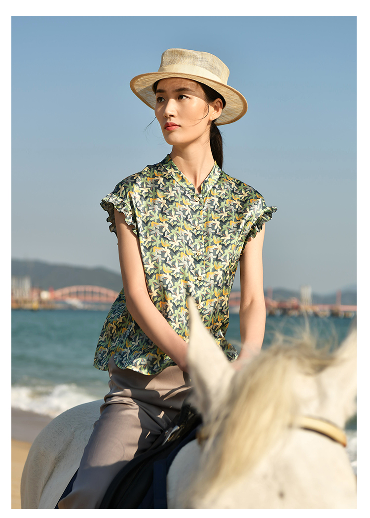 夏季新款 休闲小碎花无袖桑蚕丝真丝衬衣女E32CS33