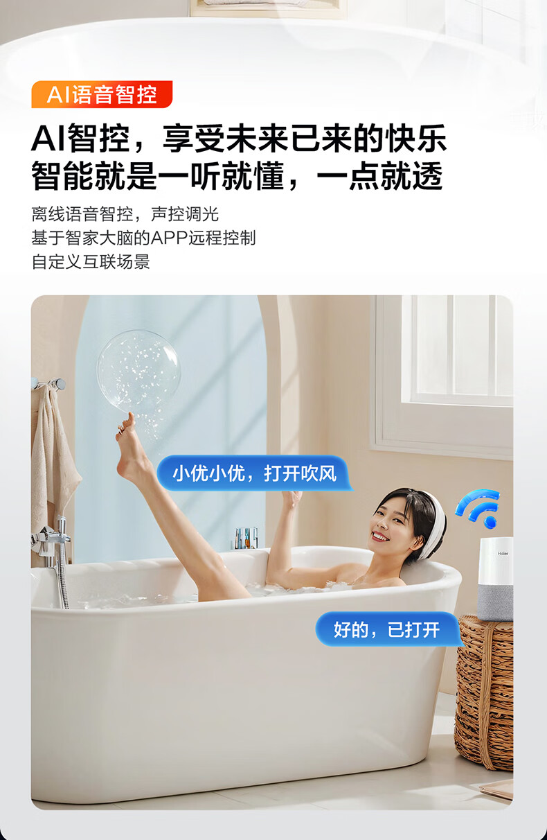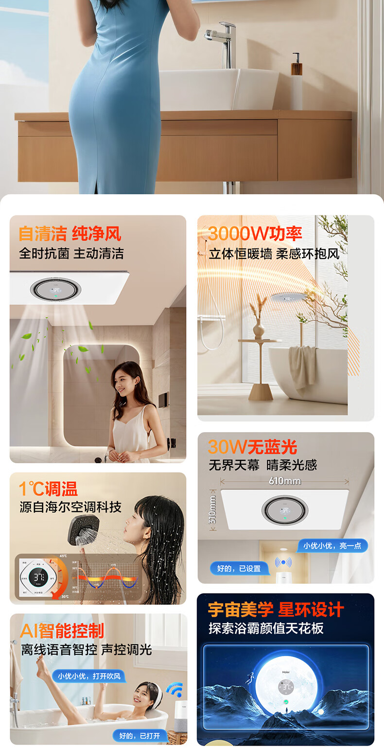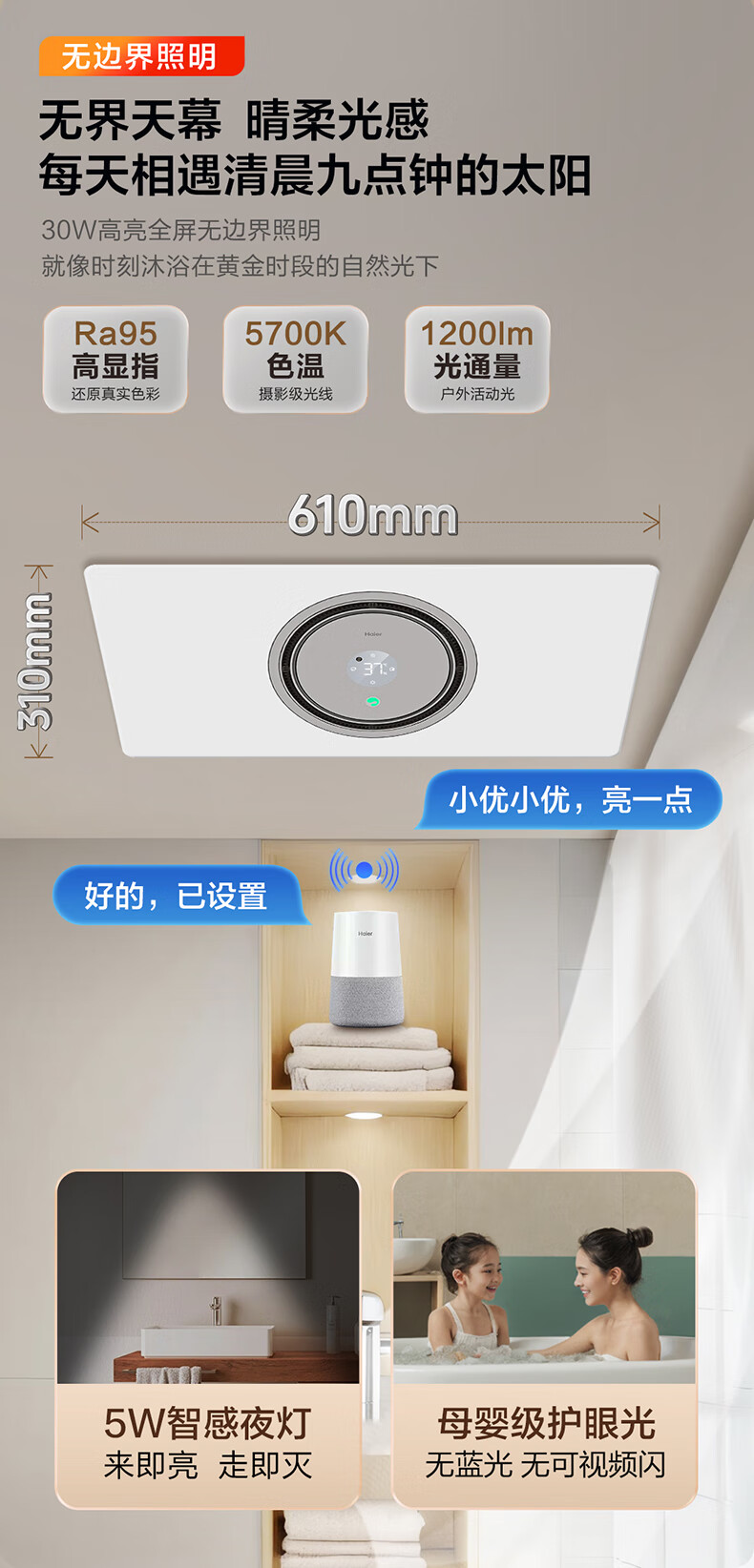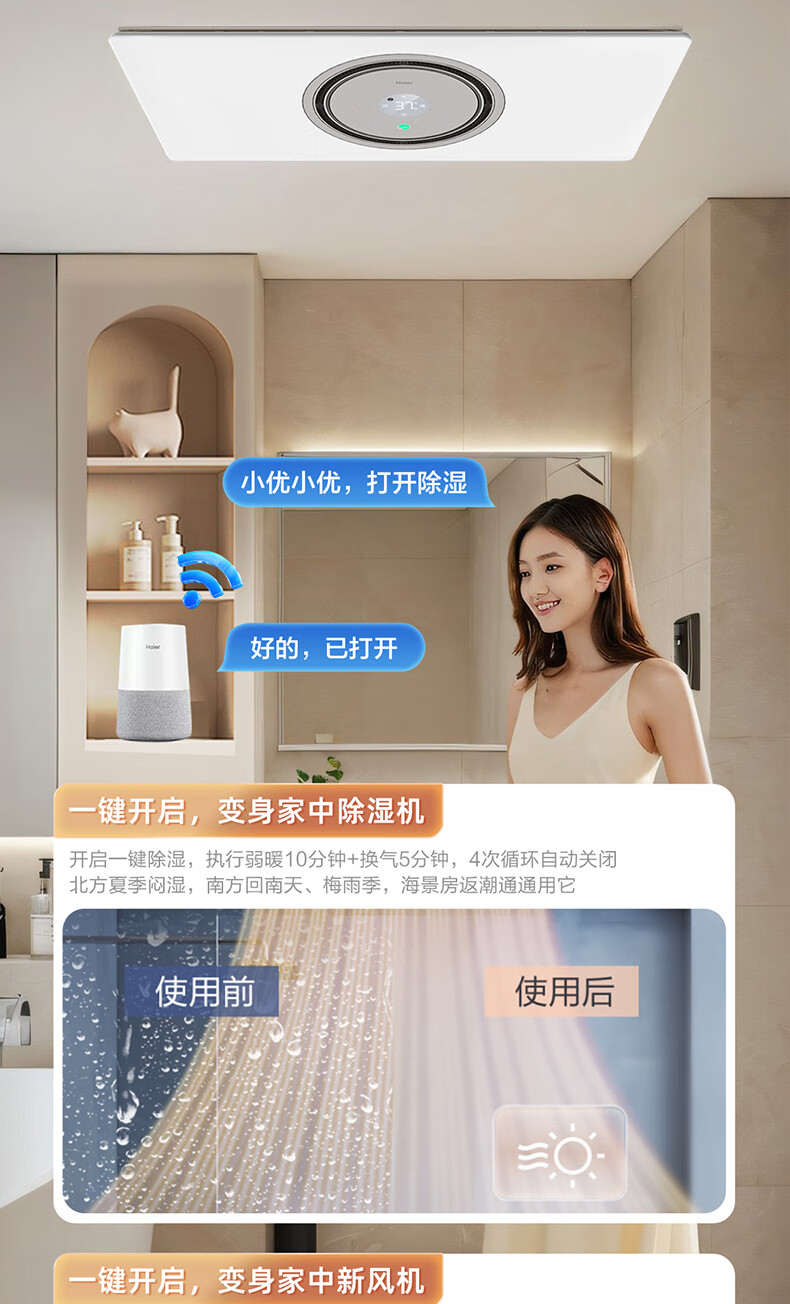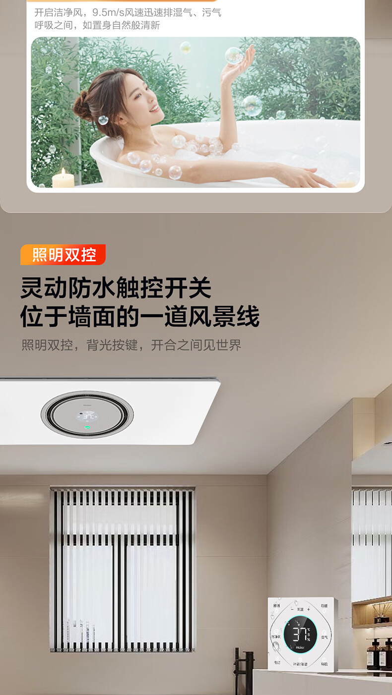 海尔全面屏智能浴霸暖风照明排气一体卫生间暖风机风暖浴霸S360proU1