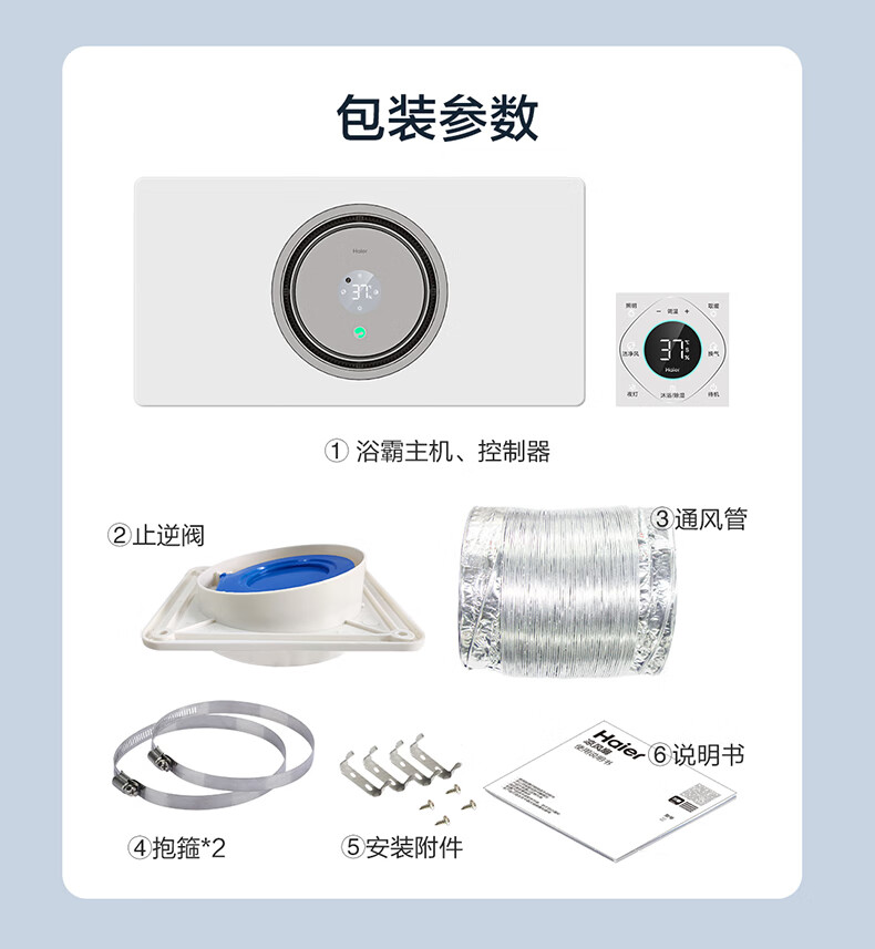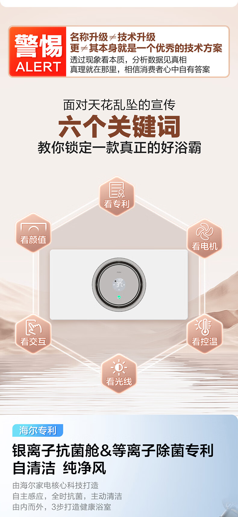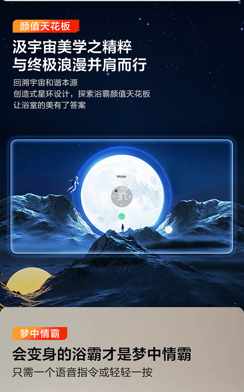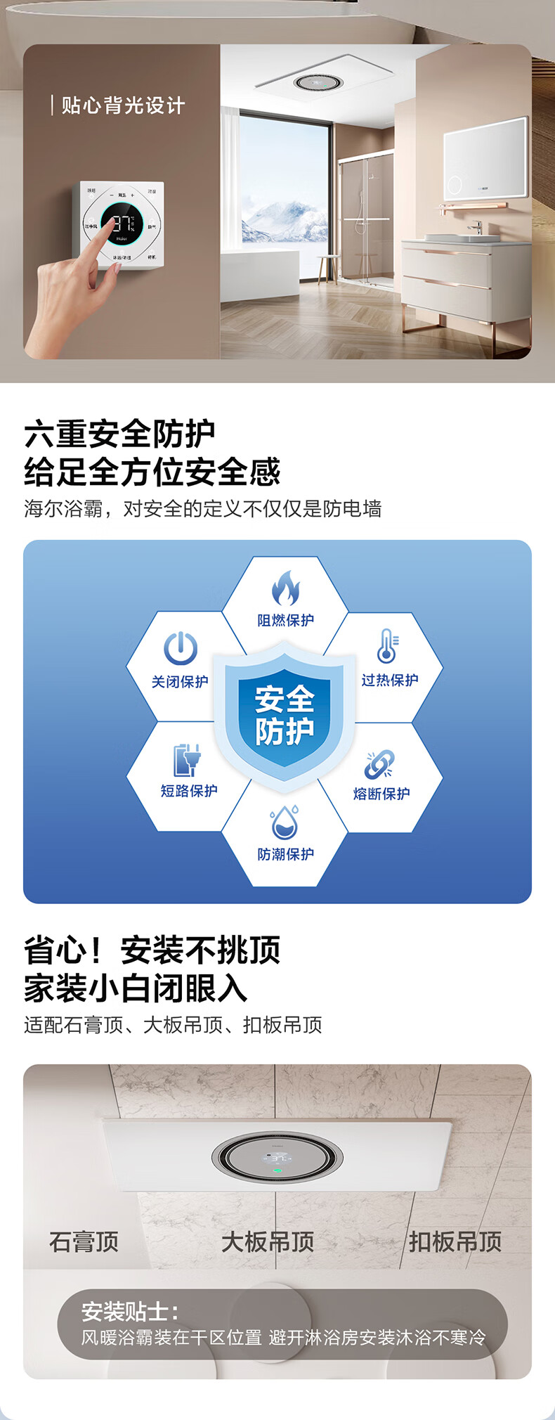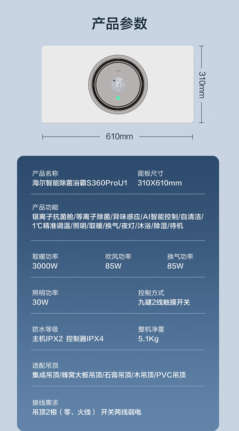 海尔全面屏智能浴霸暖风照明排气一体卫生间暖风机风暖浴霸S360proU1
