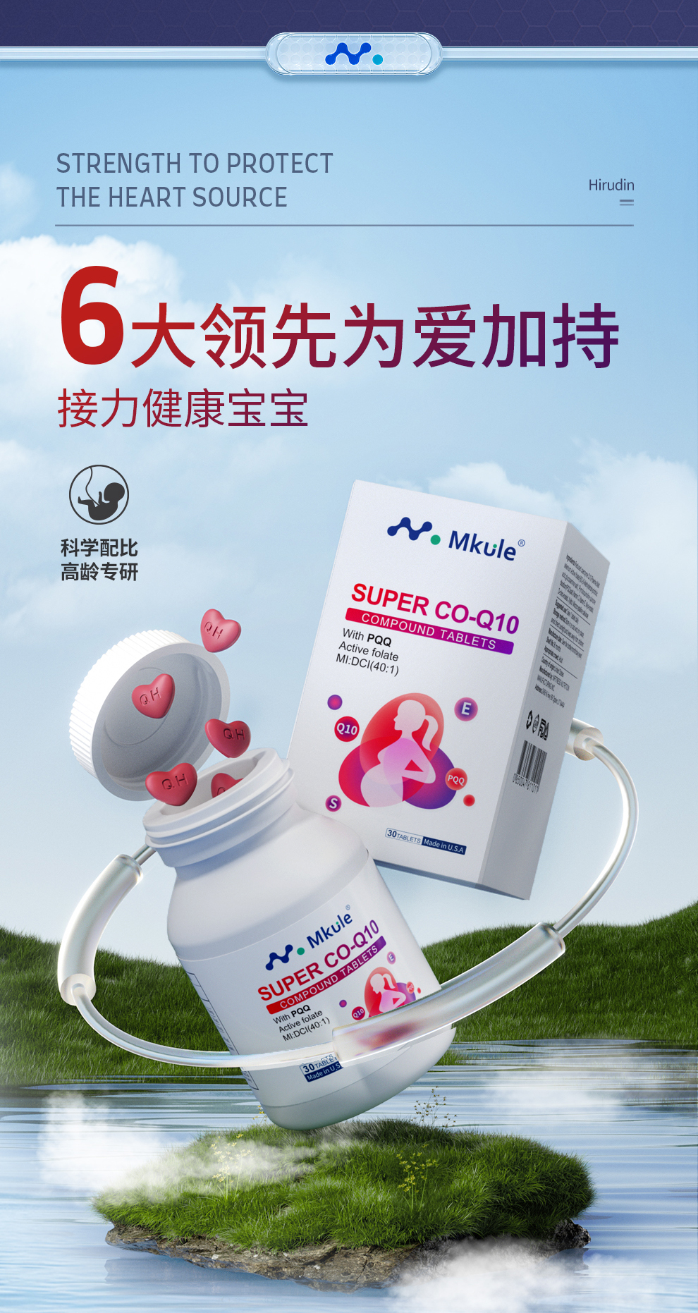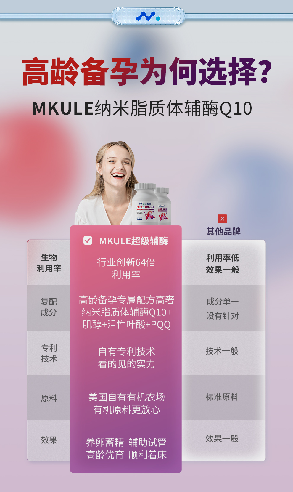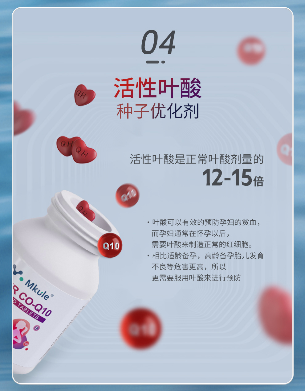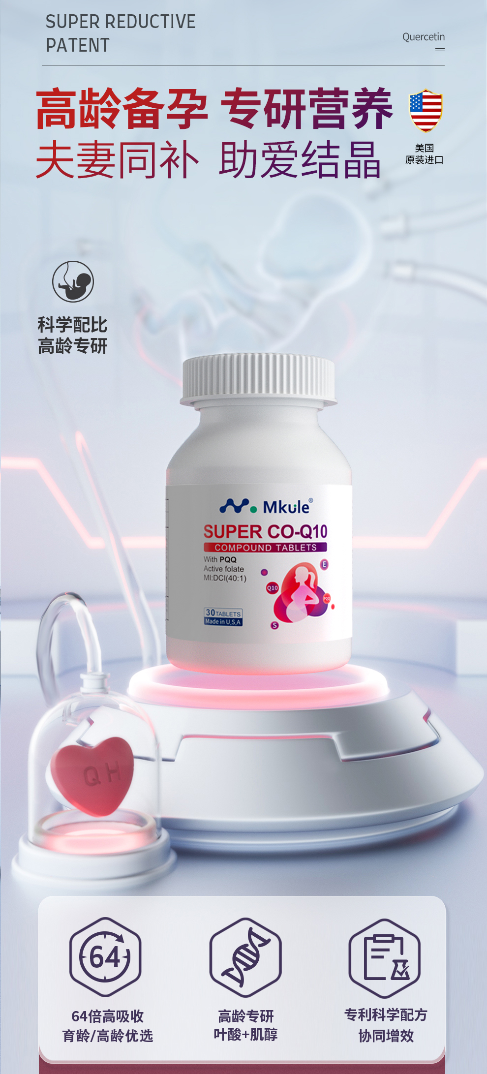 Mkule美国进口还原型辅酶q10+PQQ活性叶酸男女高龄备孕调理孕前吃