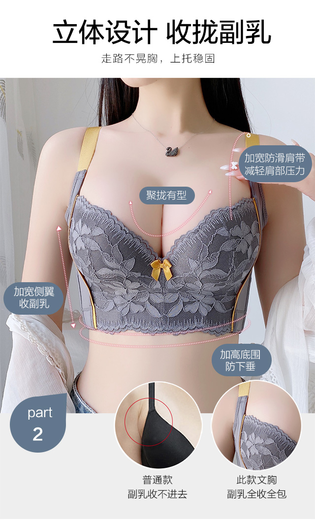提拉女王调整型文胸 软钢圈大胸包裹提胸 小胸深V不跑杯 无海绵薄款美背设计 收副乳收胃腩聚拢有型
