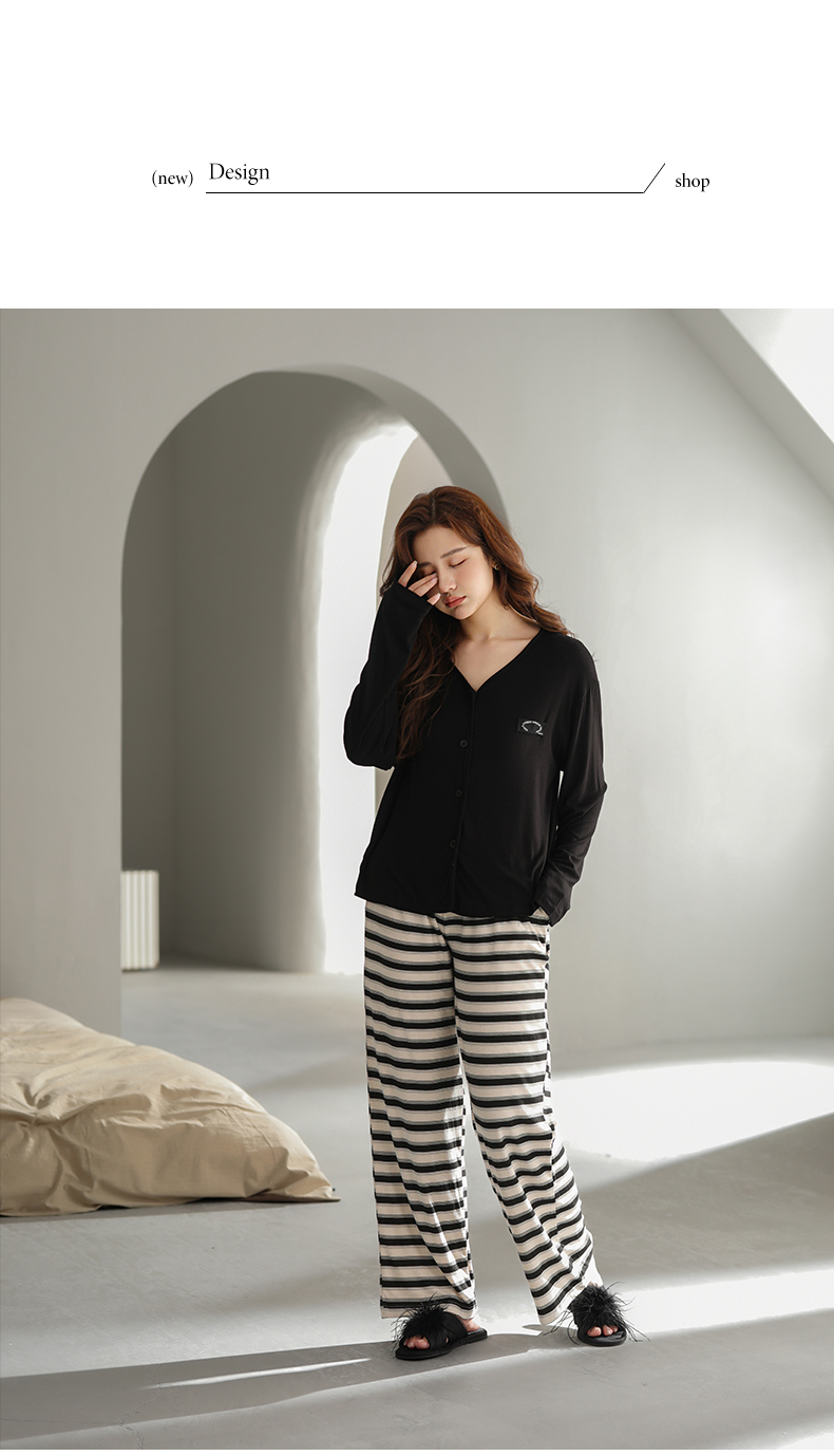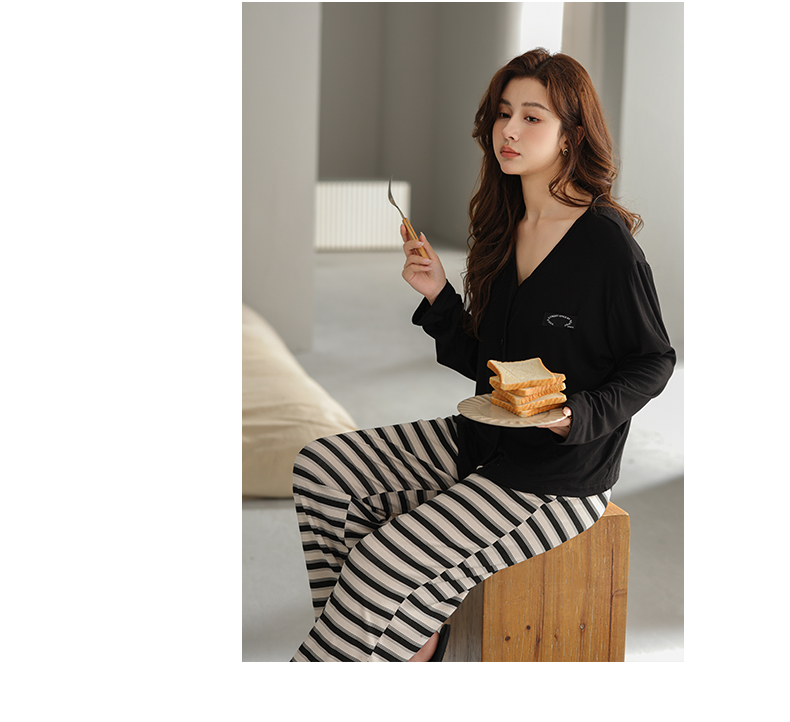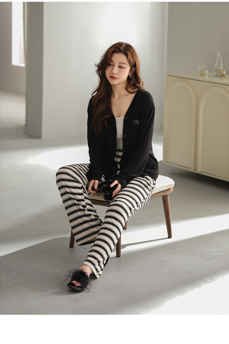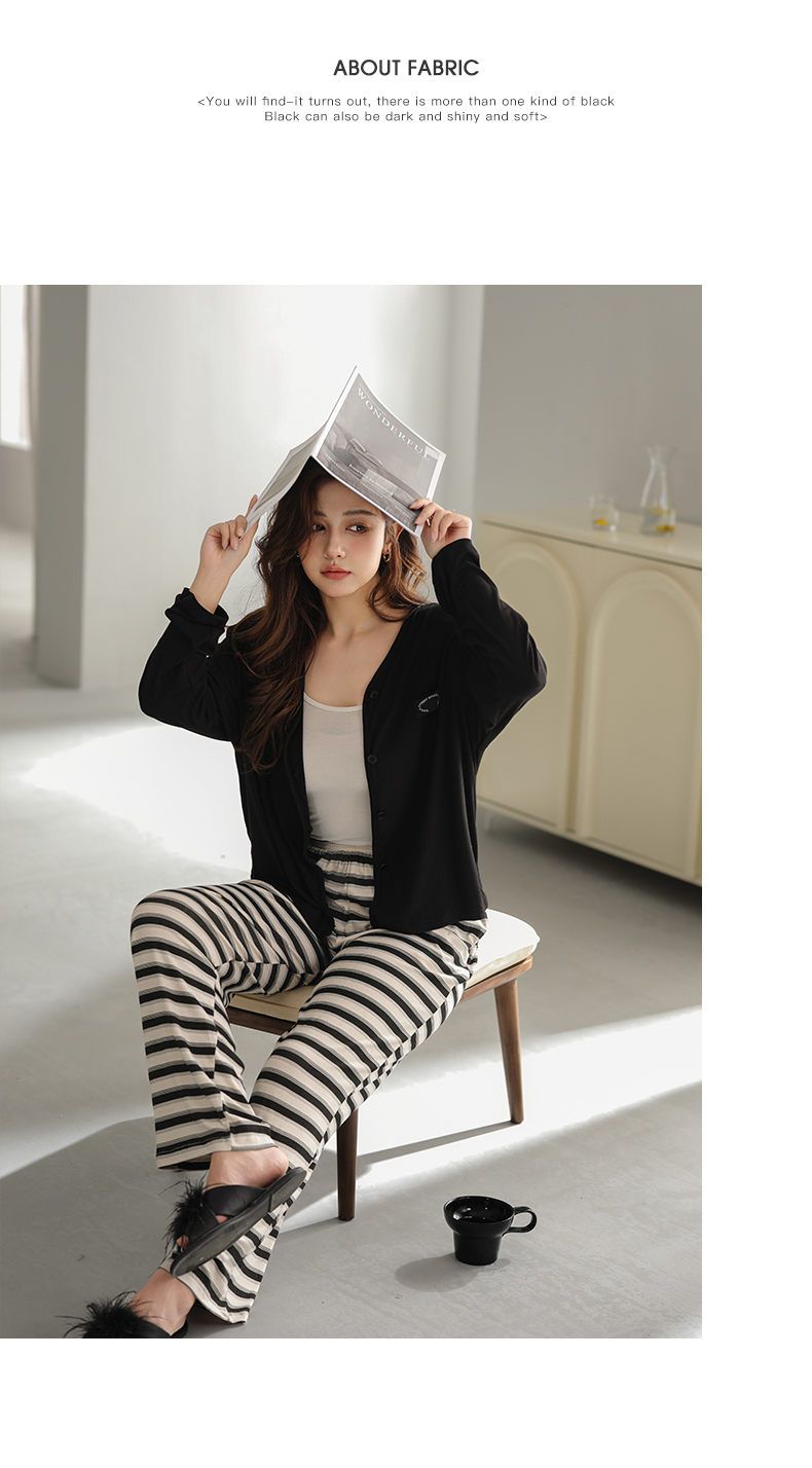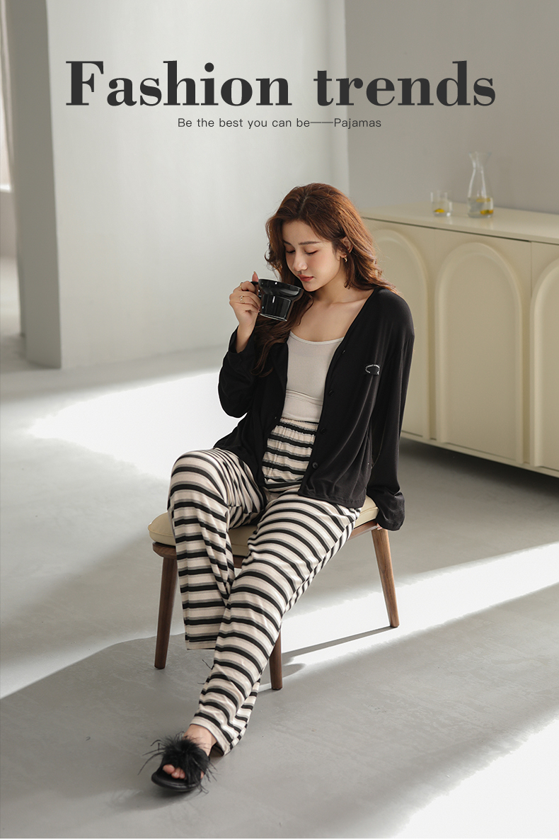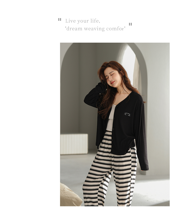 可人儿原创设计新款云柔棉女士睡衣春秋长袖时尚可外出家居服套装