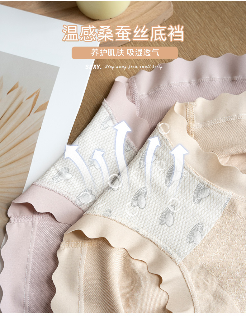 【YW】无忧购35元2件,45元3件收腹提臀透气内裤抗菌无缝桑蚕丝养护温变抑菌裆MZ3881-9(截单后3-5天发货)
