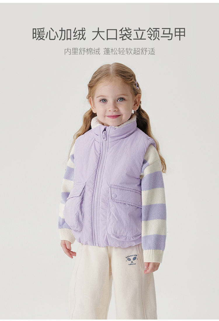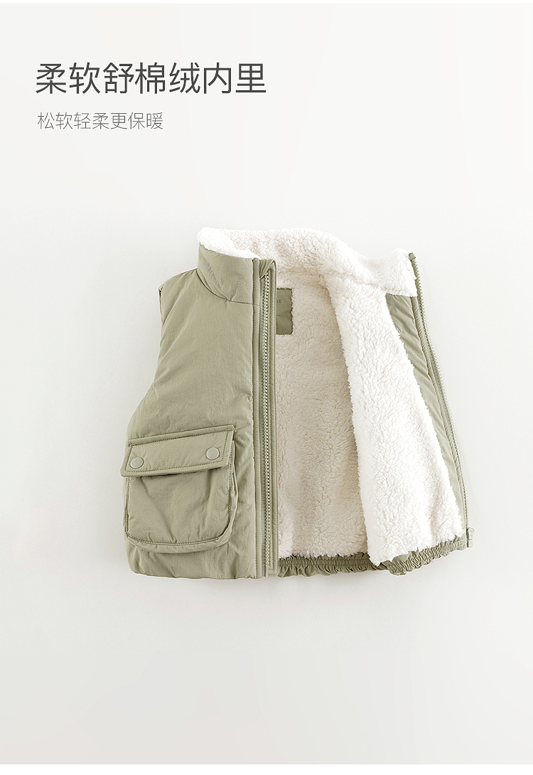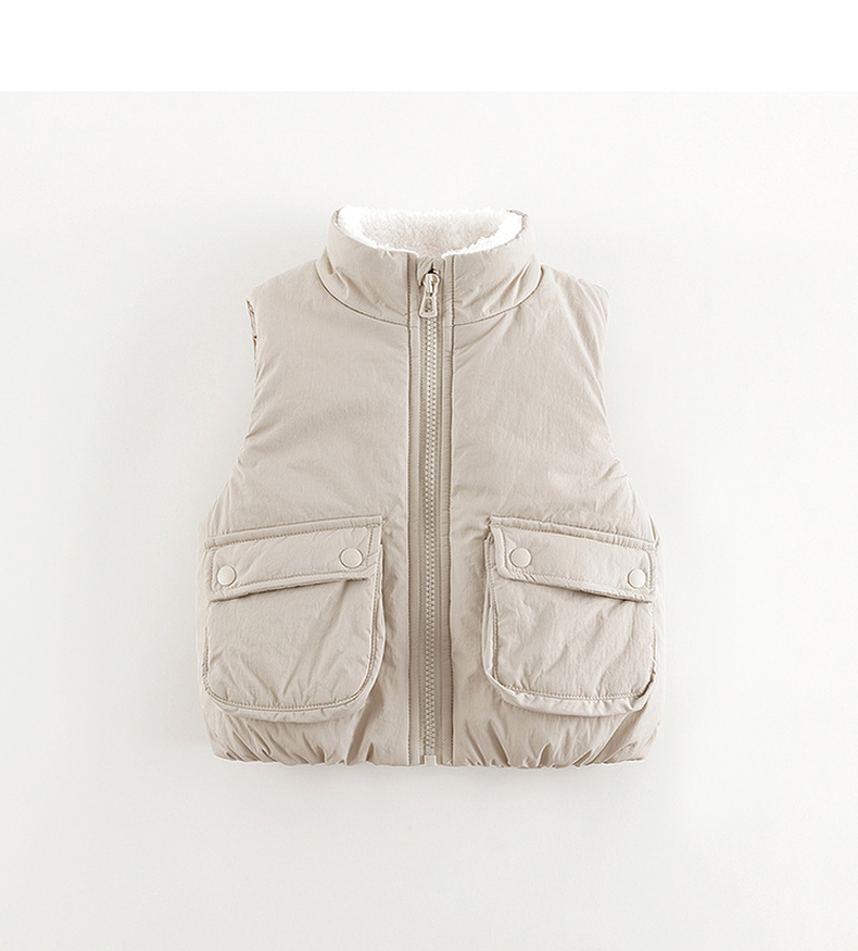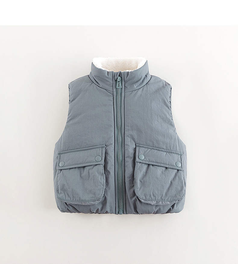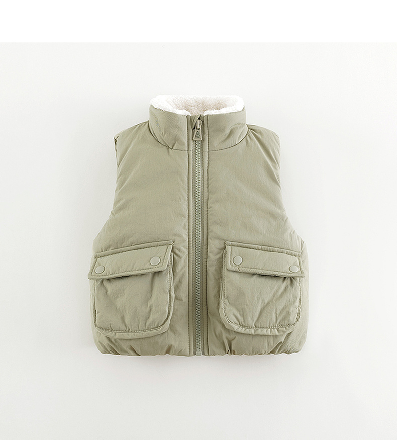 马克珍妮男女童大口袋立领加绒马甲儿童外套2024年秋冬新款241516