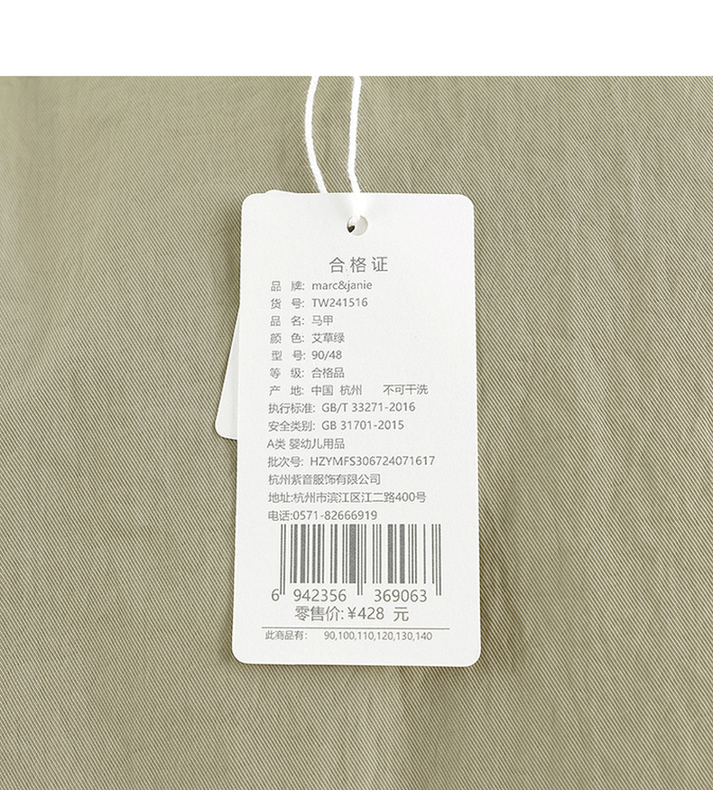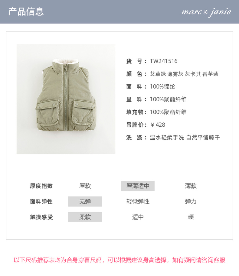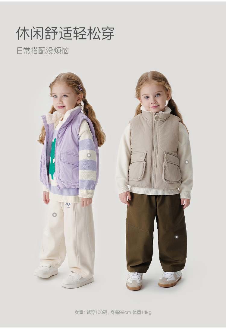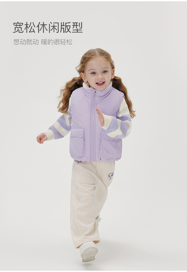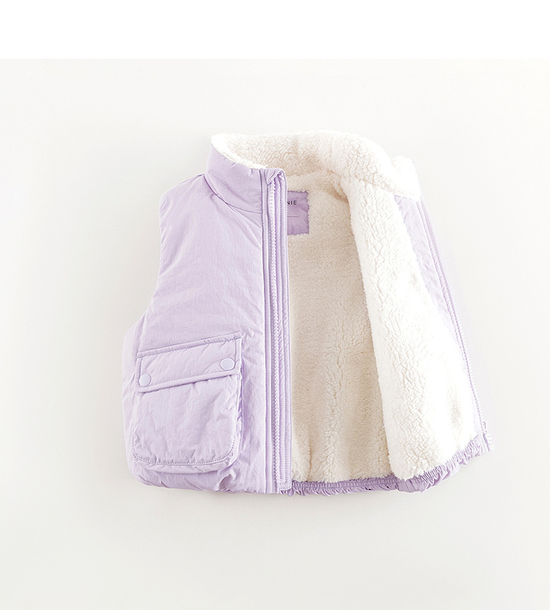 马克珍妮男女童大口袋立领加绒马甲儿童外套2024年秋冬新款241516