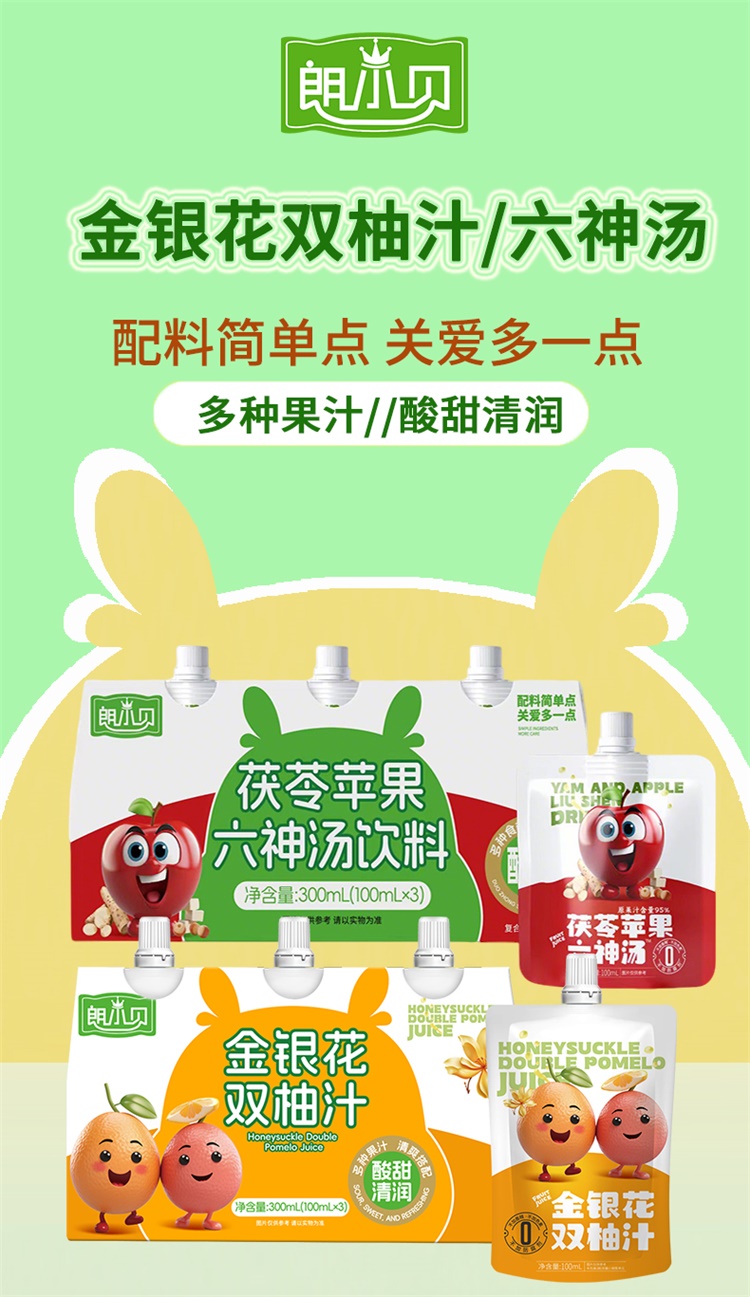 朗小贝 茯苓苹果六神汤饮料/金银花双柚汁