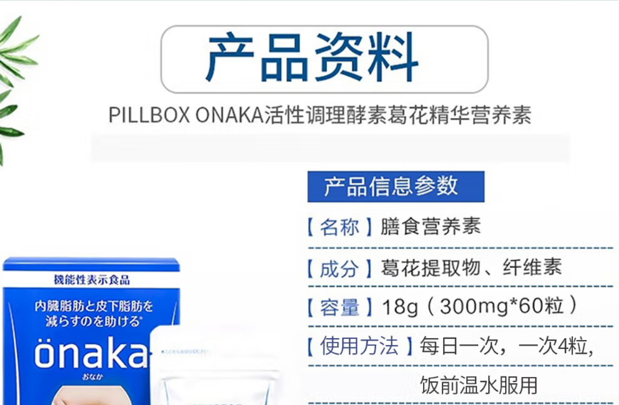 onaka葛花精华膳食营养素胶囊60粒 一盒/蓝色装【15天量】