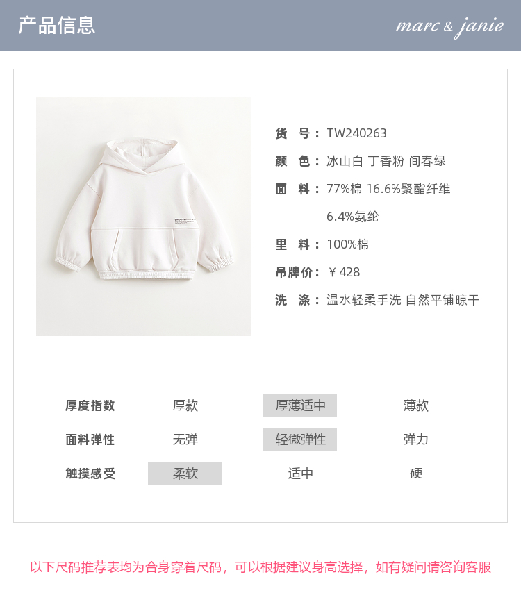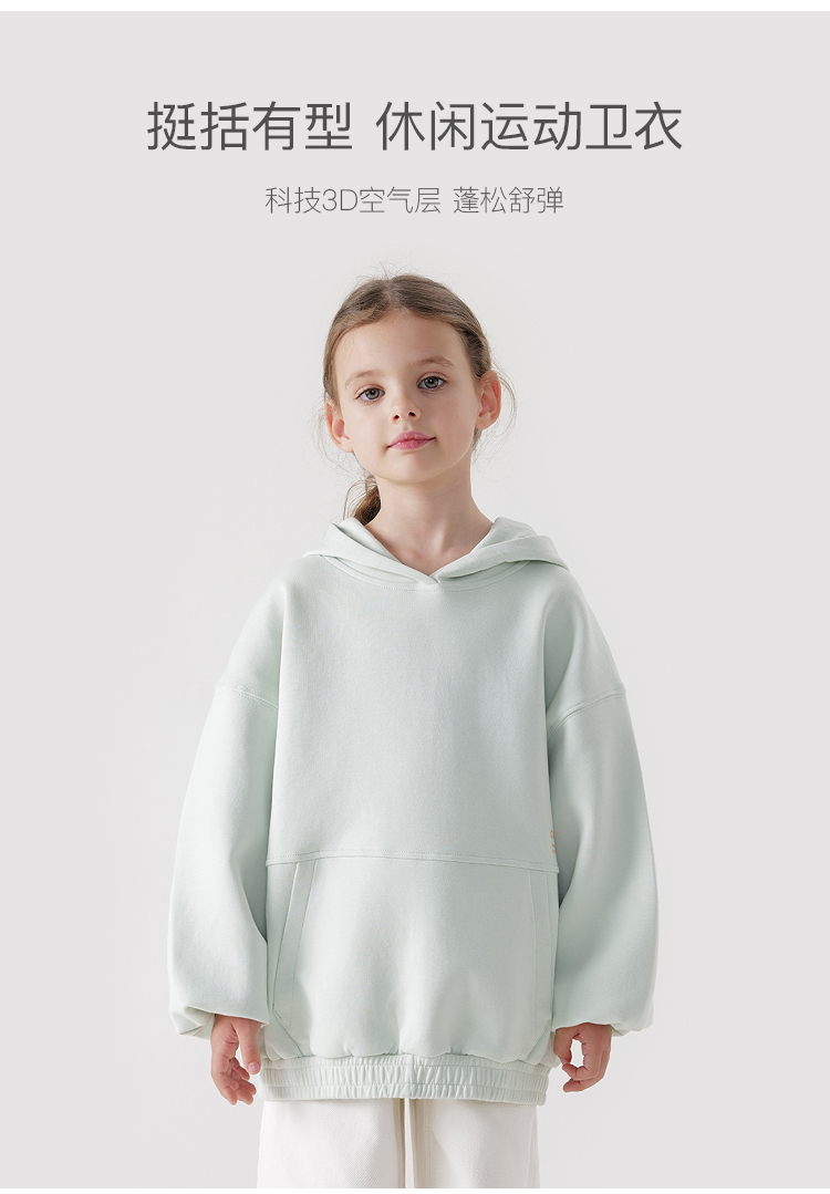 【空气层】马克珍妮男女童宽松休闲连帽卫衣大口袋上衣春款240263