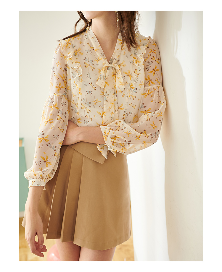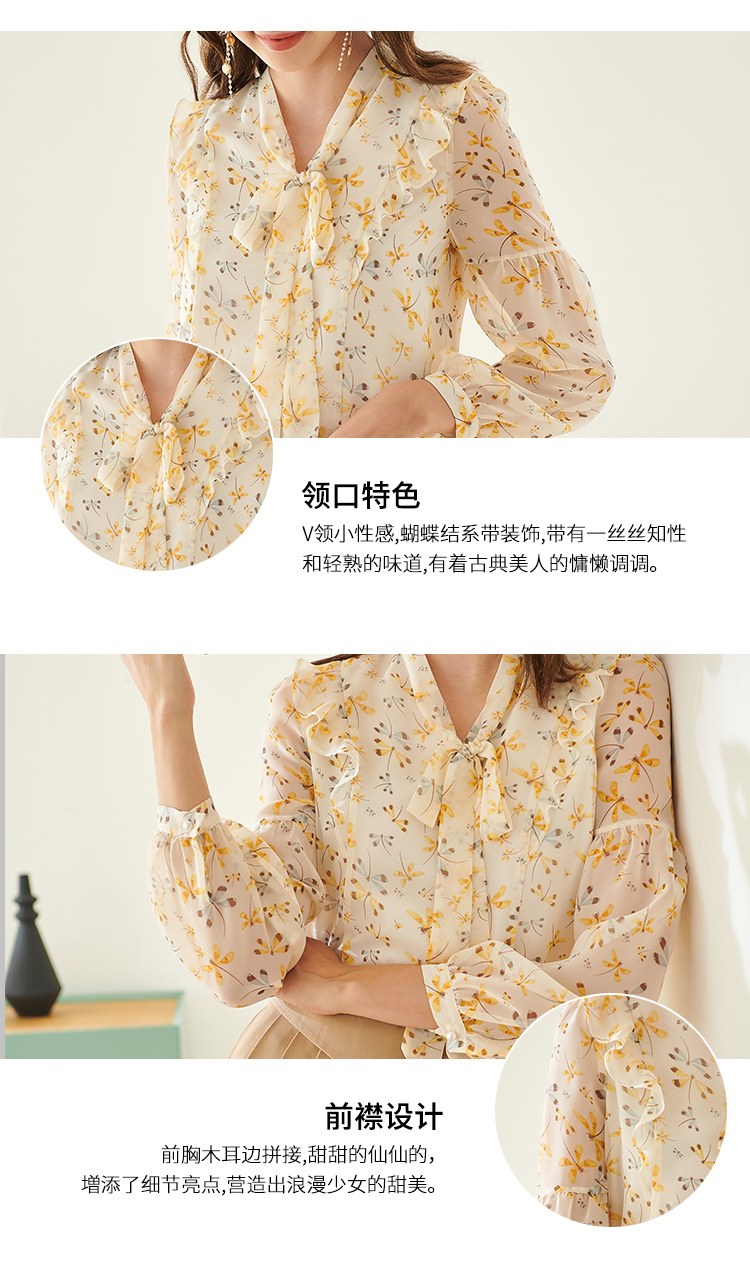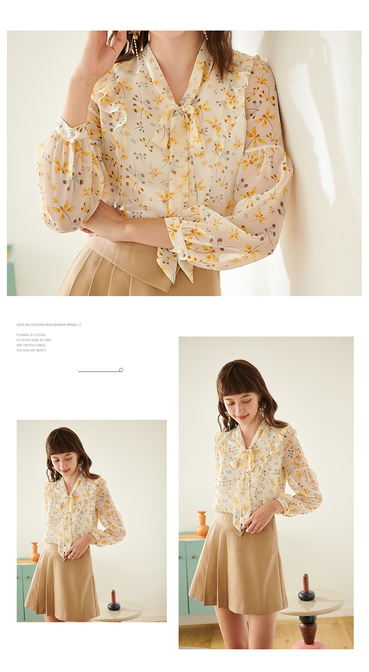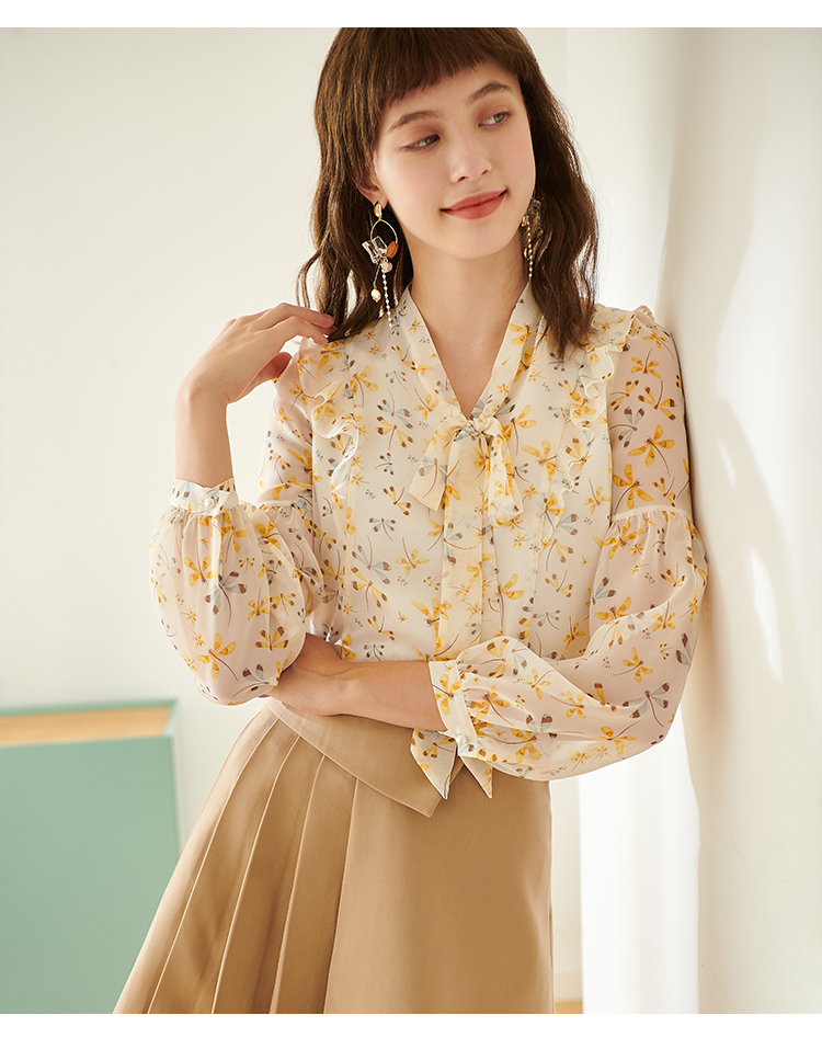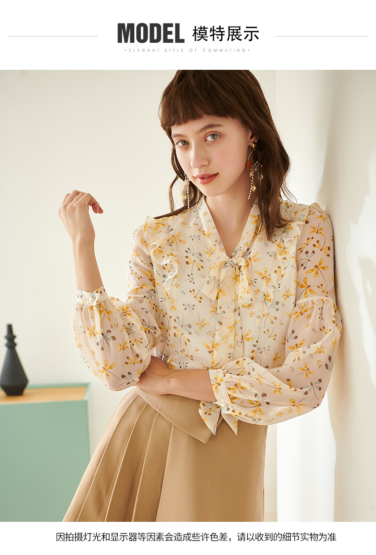 欧芮儿新款长袖雪纺衫花色系带衬衫气质时尚上衣女
