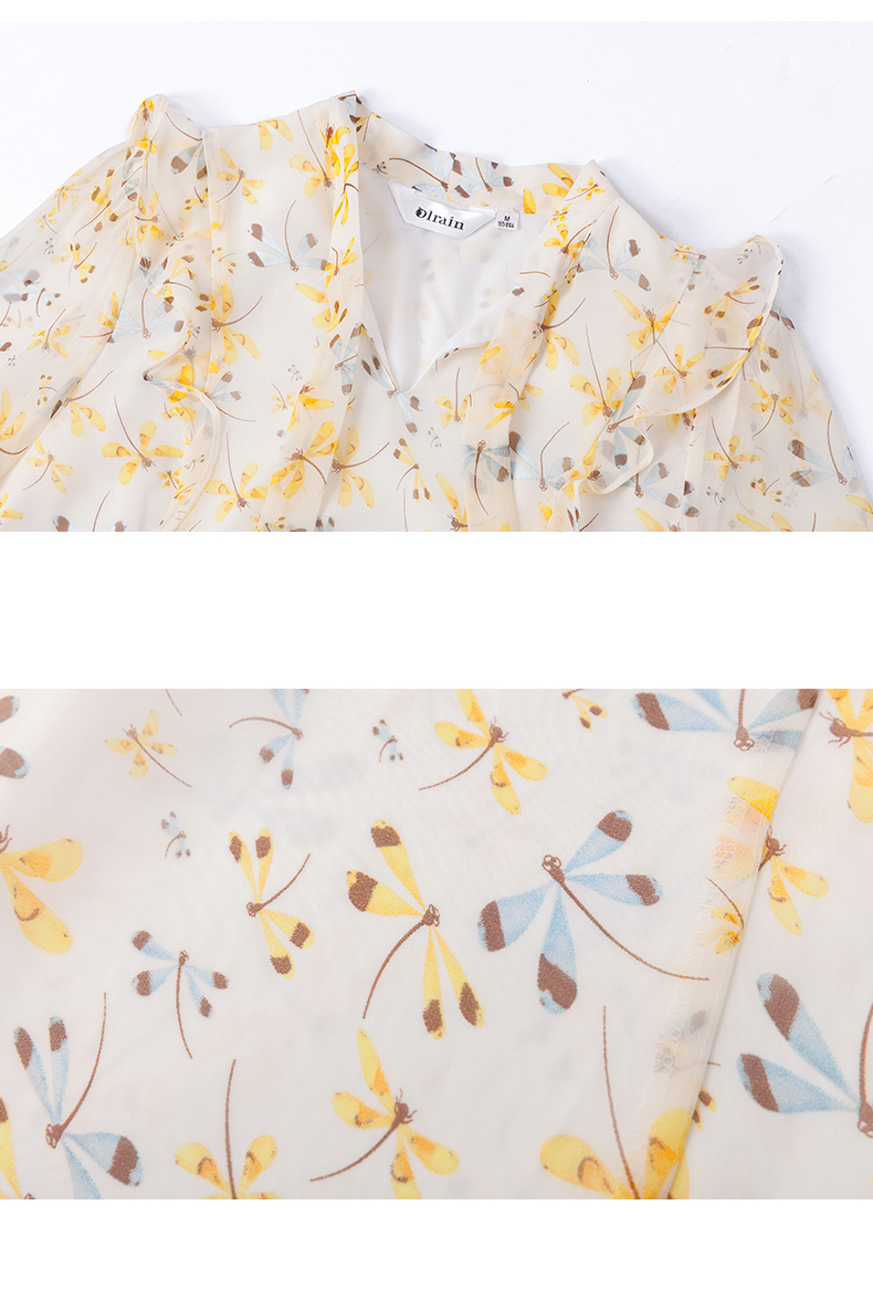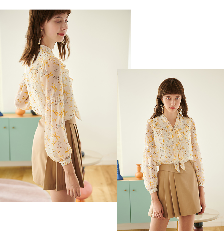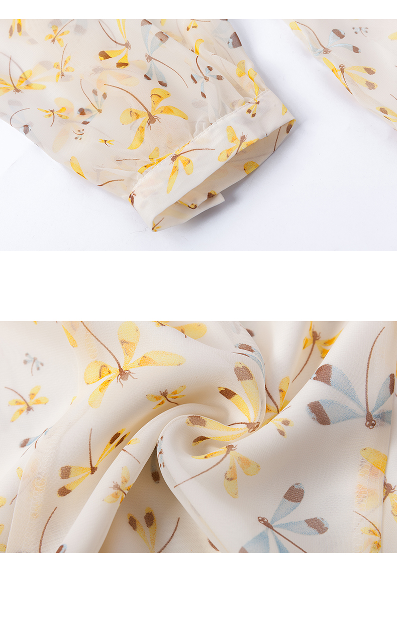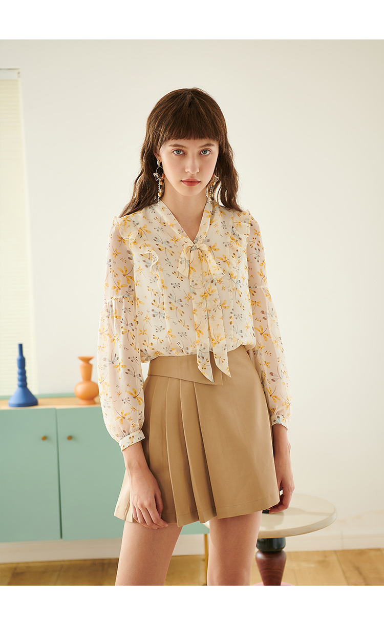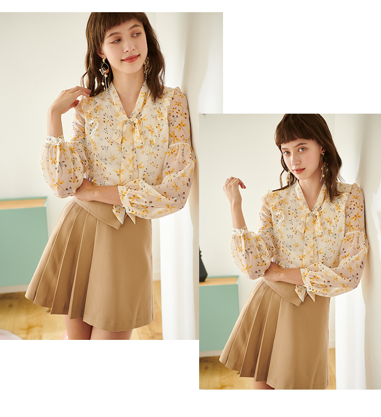 欧芮儿新款长袖雪纺衫花色系带衬衫气质时尚上衣女