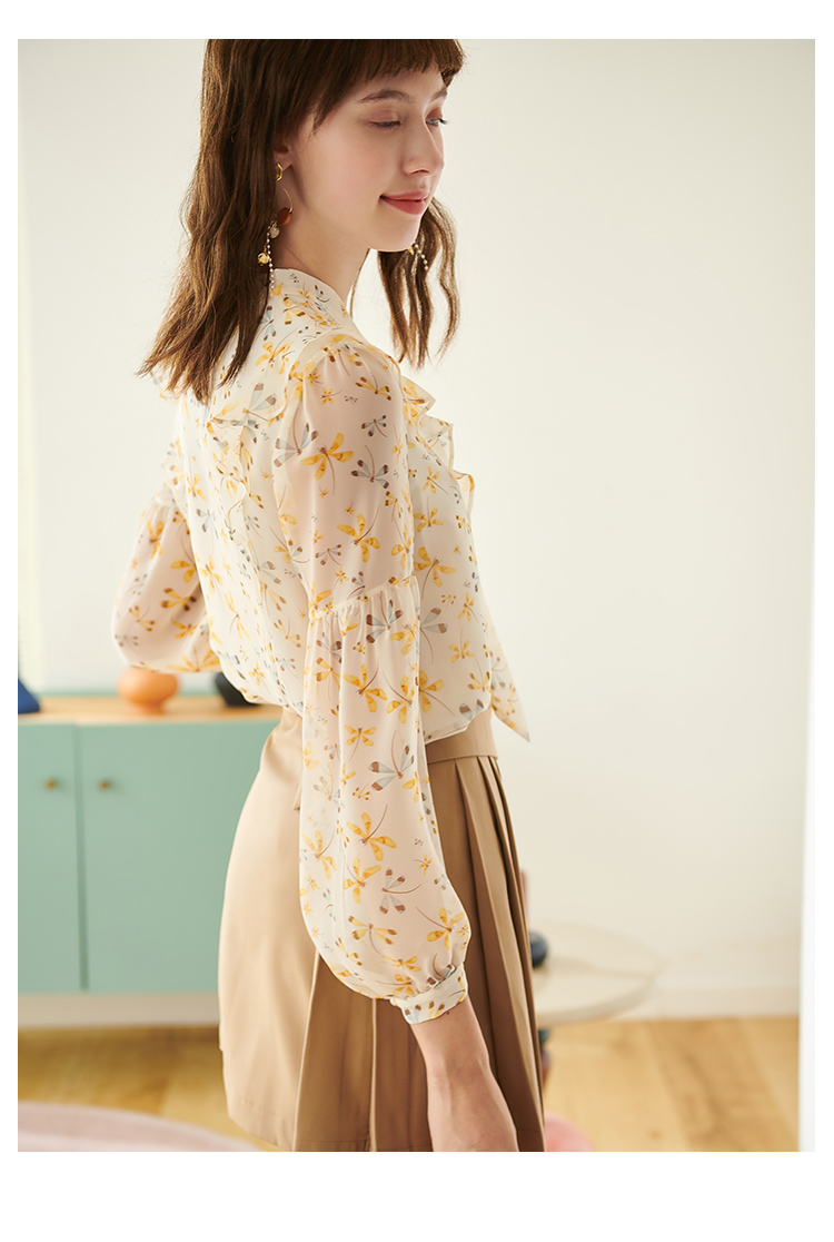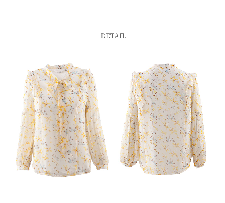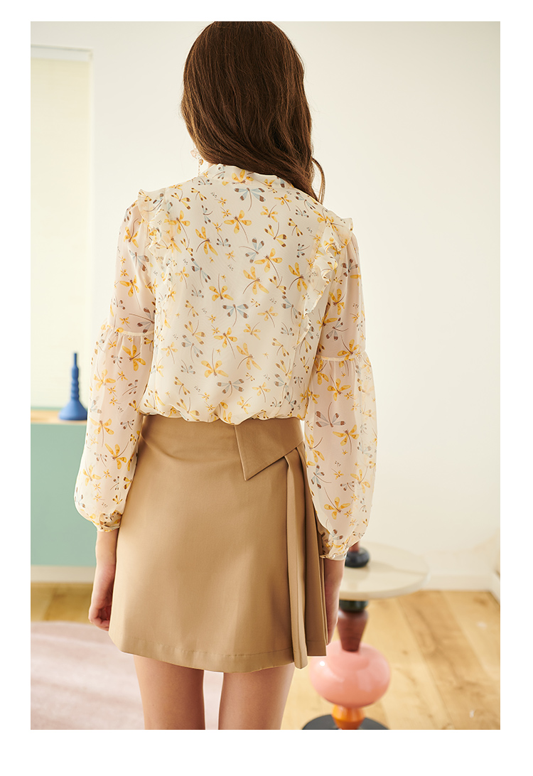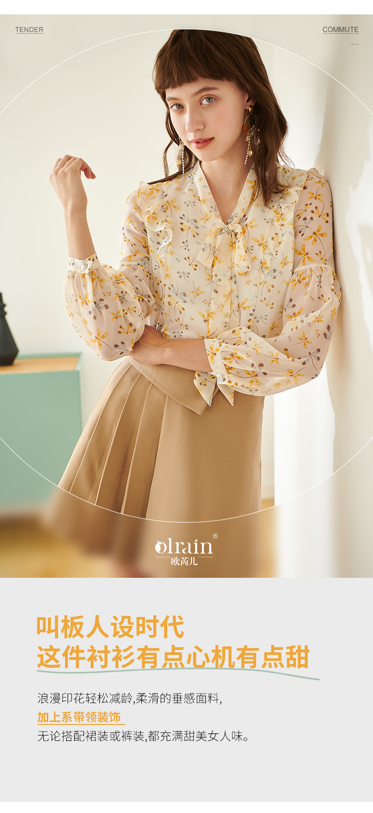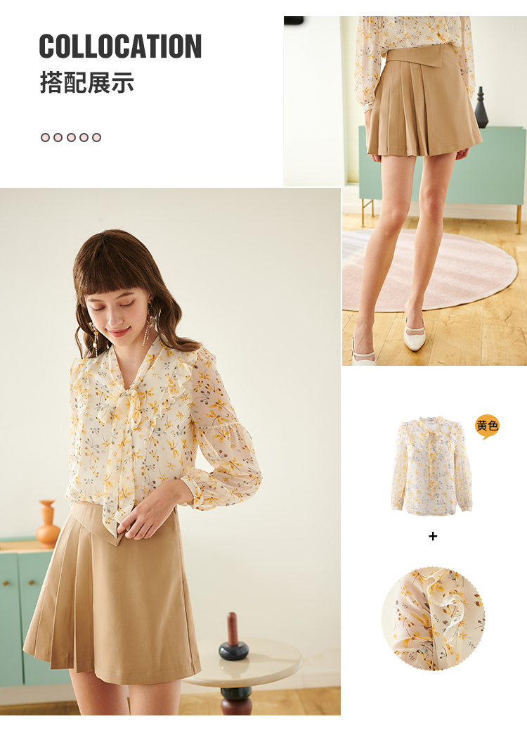 欧芮儿新款长袖雪纺衫花色系带衬衫气质时尚上衣女