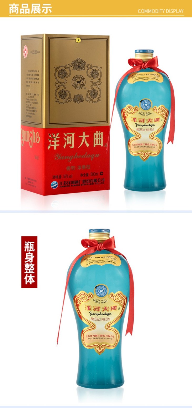 洋河大曲老天蓝浓香型白酒 55度500ml/1瓶/2瓶/6瓶整箱