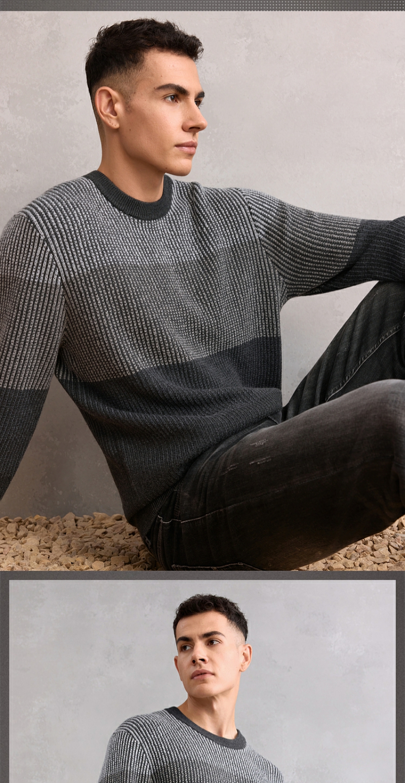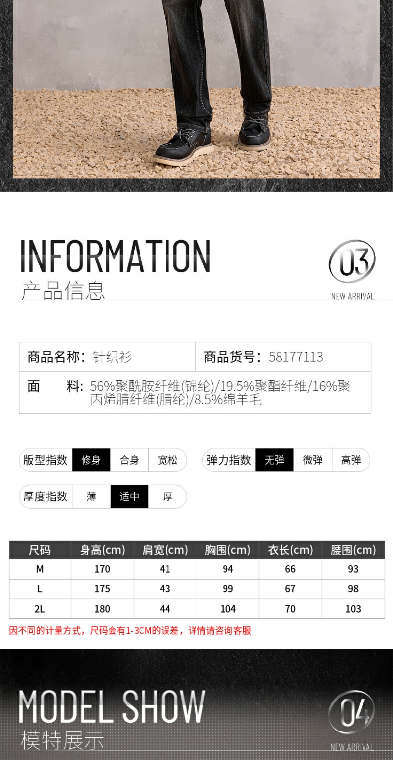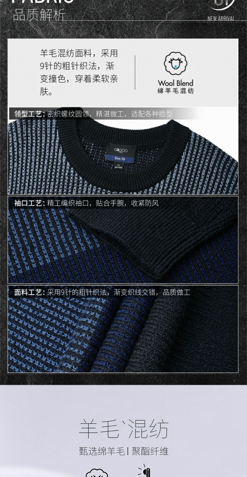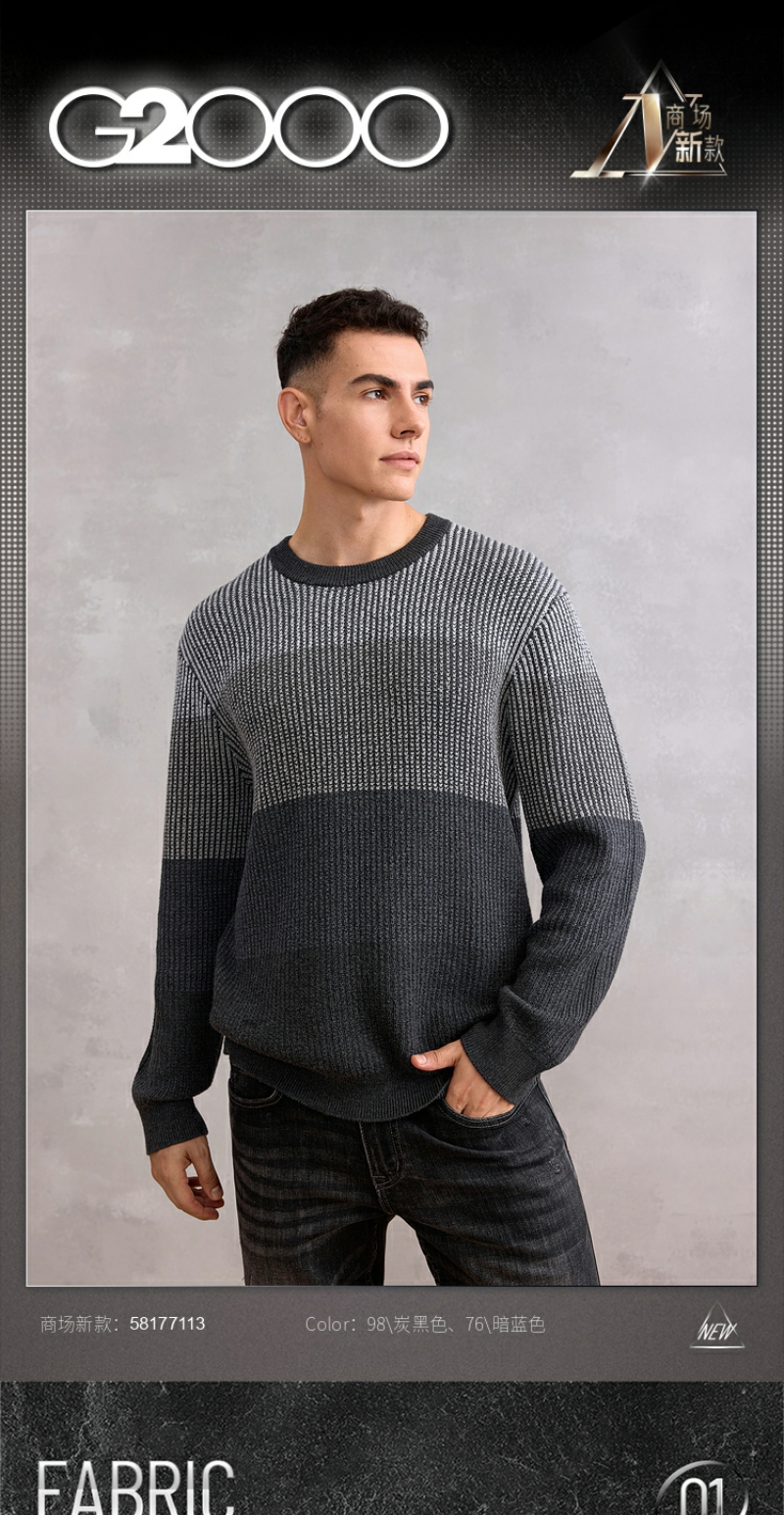 G2000男装FW25商场新款【绵羊毛混纺】柔软舒适拼色修身针织衫58177113