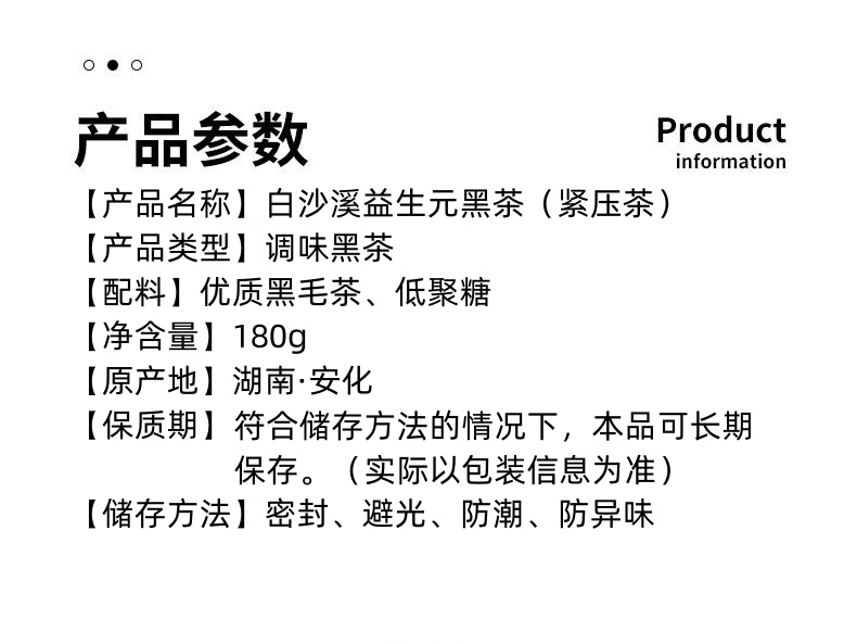 白沙溪益生元黑茶(紧压茶)180克