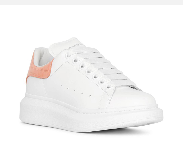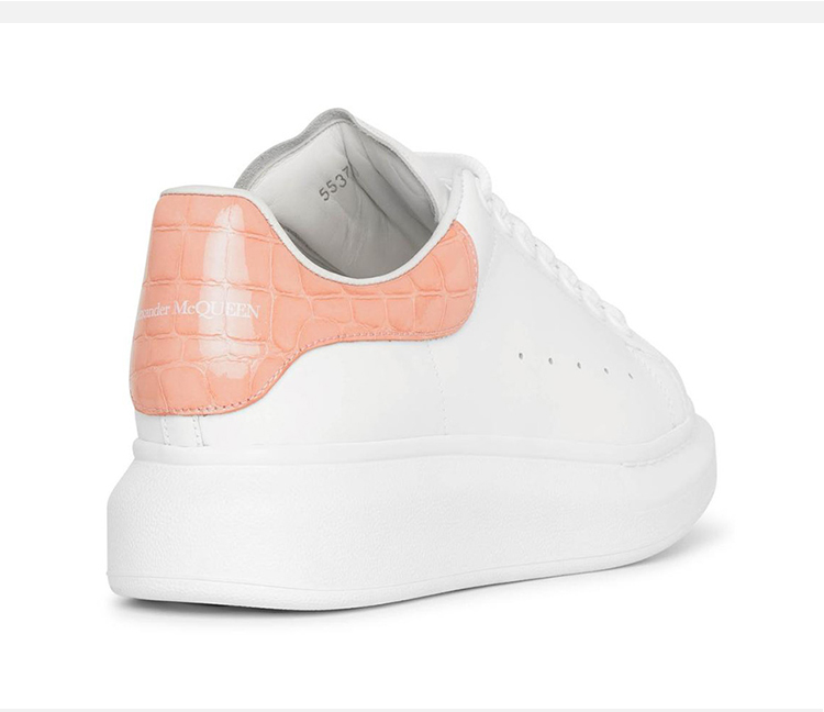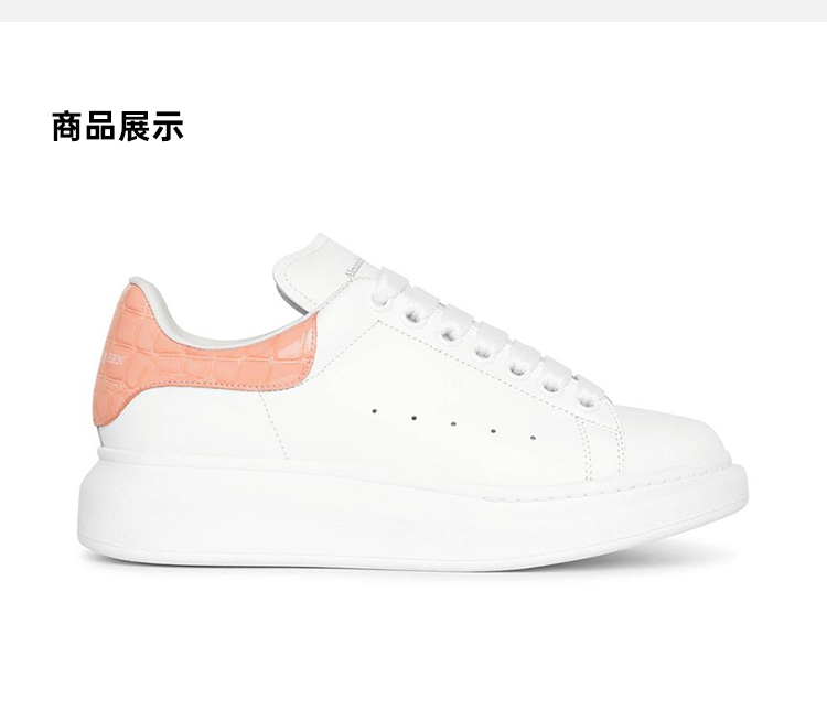 ALEXANDER MCQUEEN 亚历山大麦昆 女士粉尾牛皮革鳄鱼纹休闲运动鞋 白色 553770 WIAF8 9414