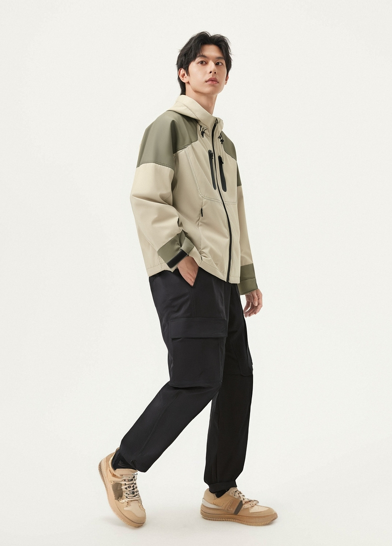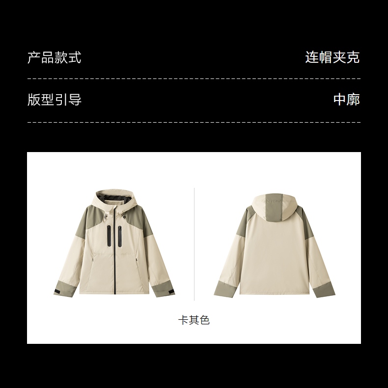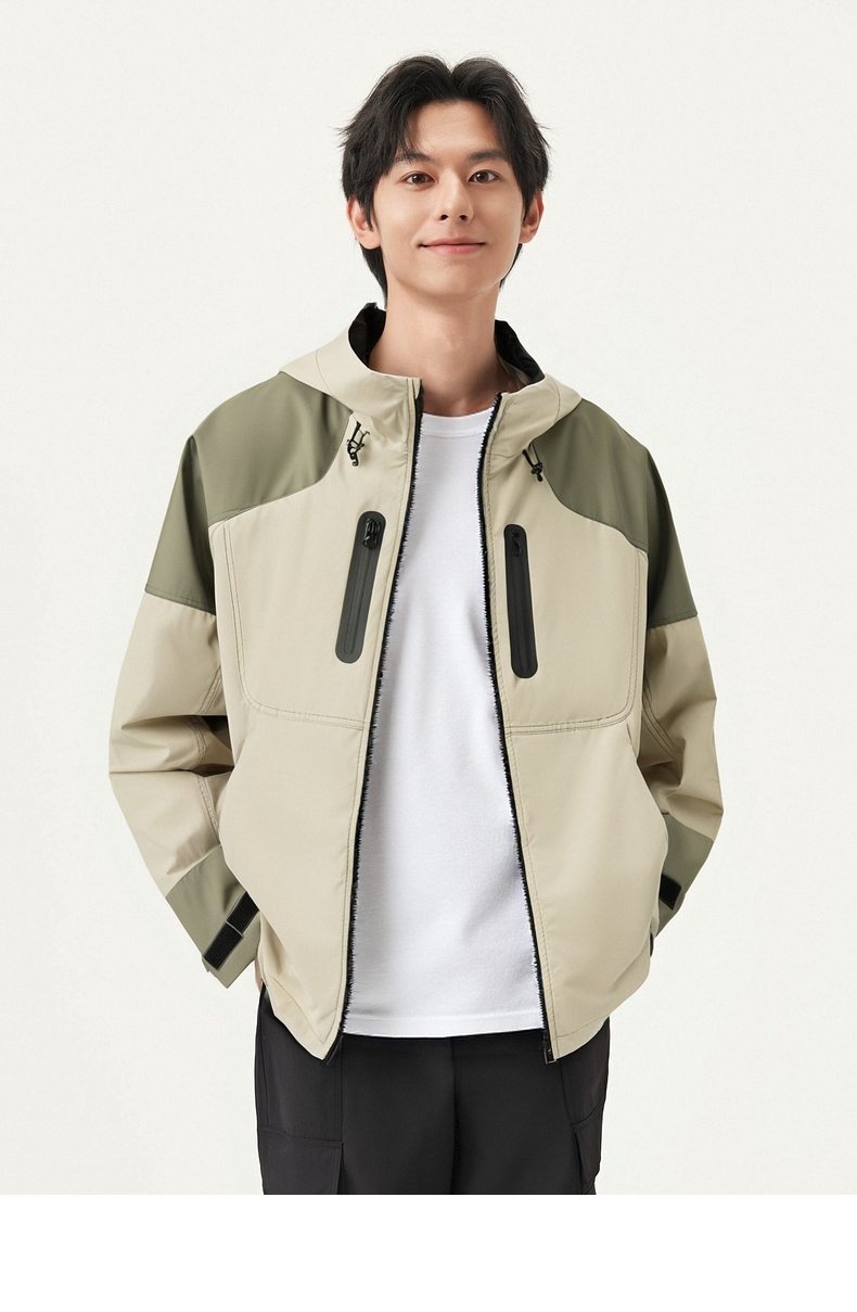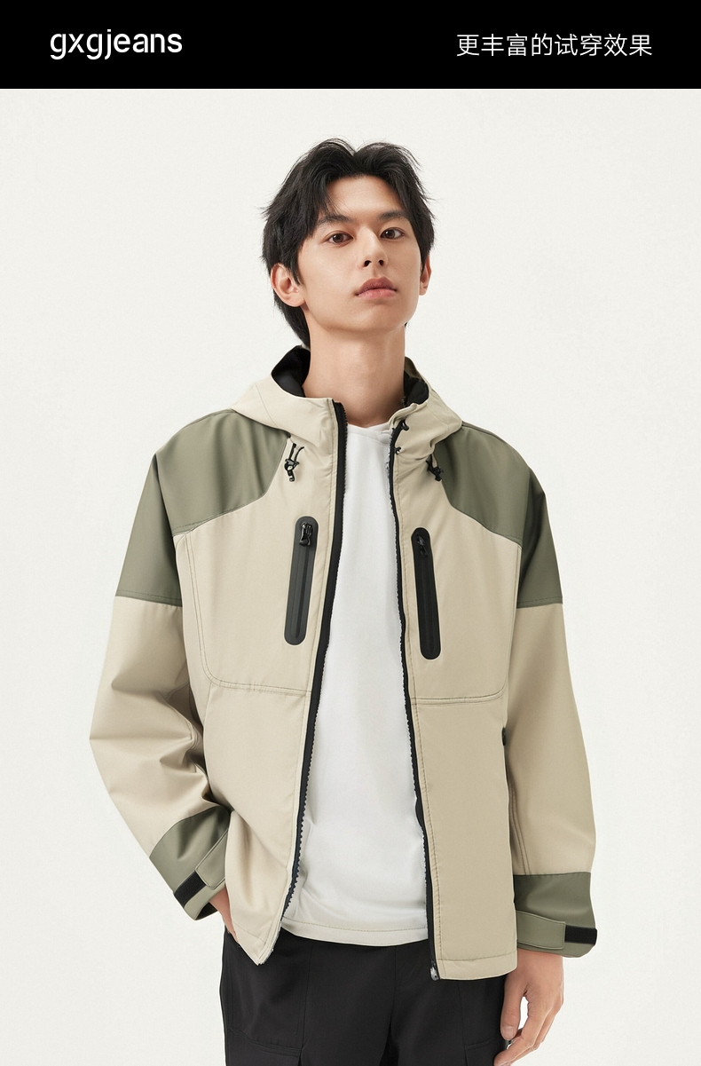 gxg.jeans男装 卡其色撞色户外风时尚连帽夹克外套男士 25春热卖
