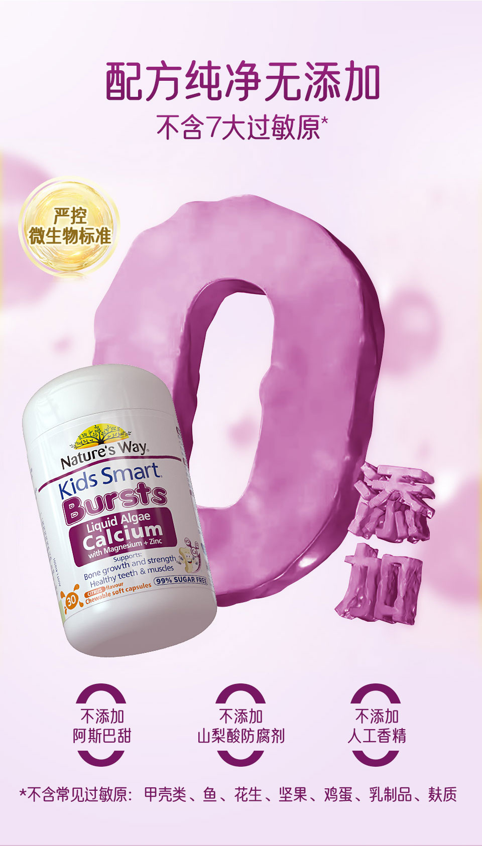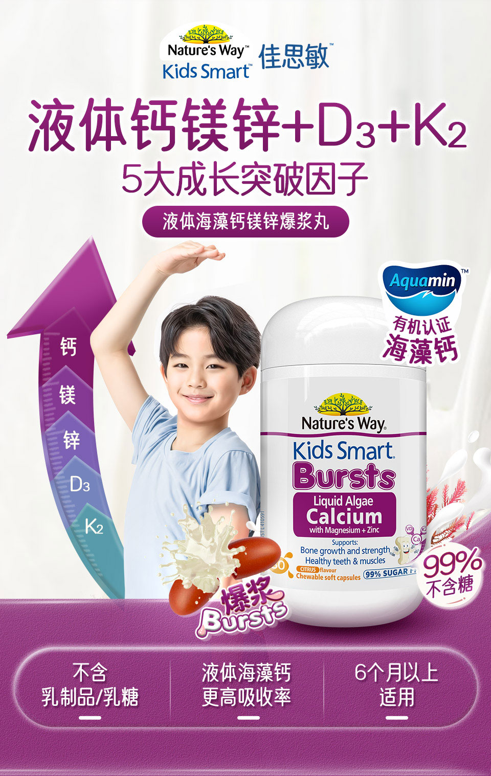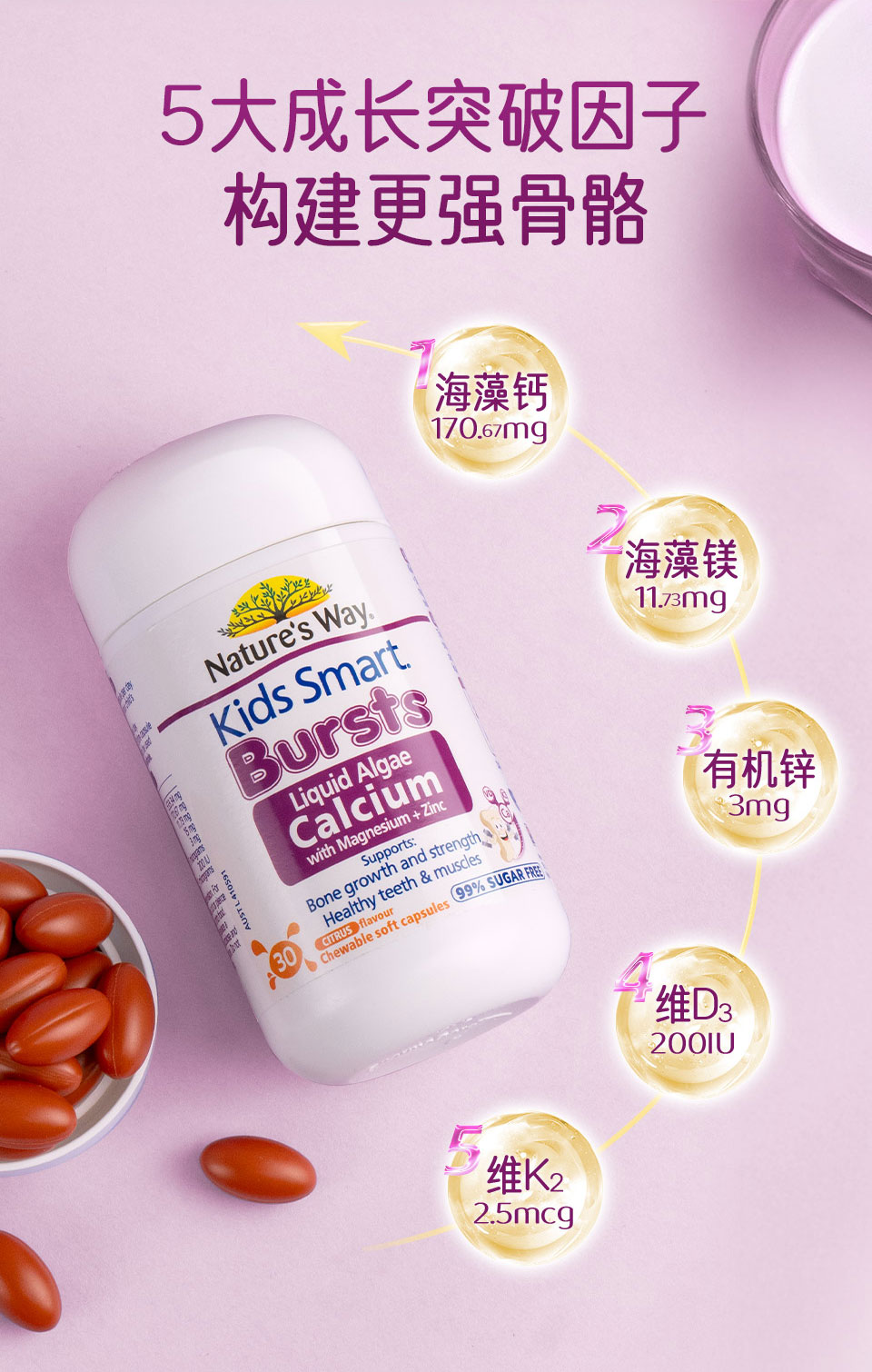 【跨境】Nature's Way佳思敏儿童钙+VD软糖60粒/瓶(效期:2026.10)