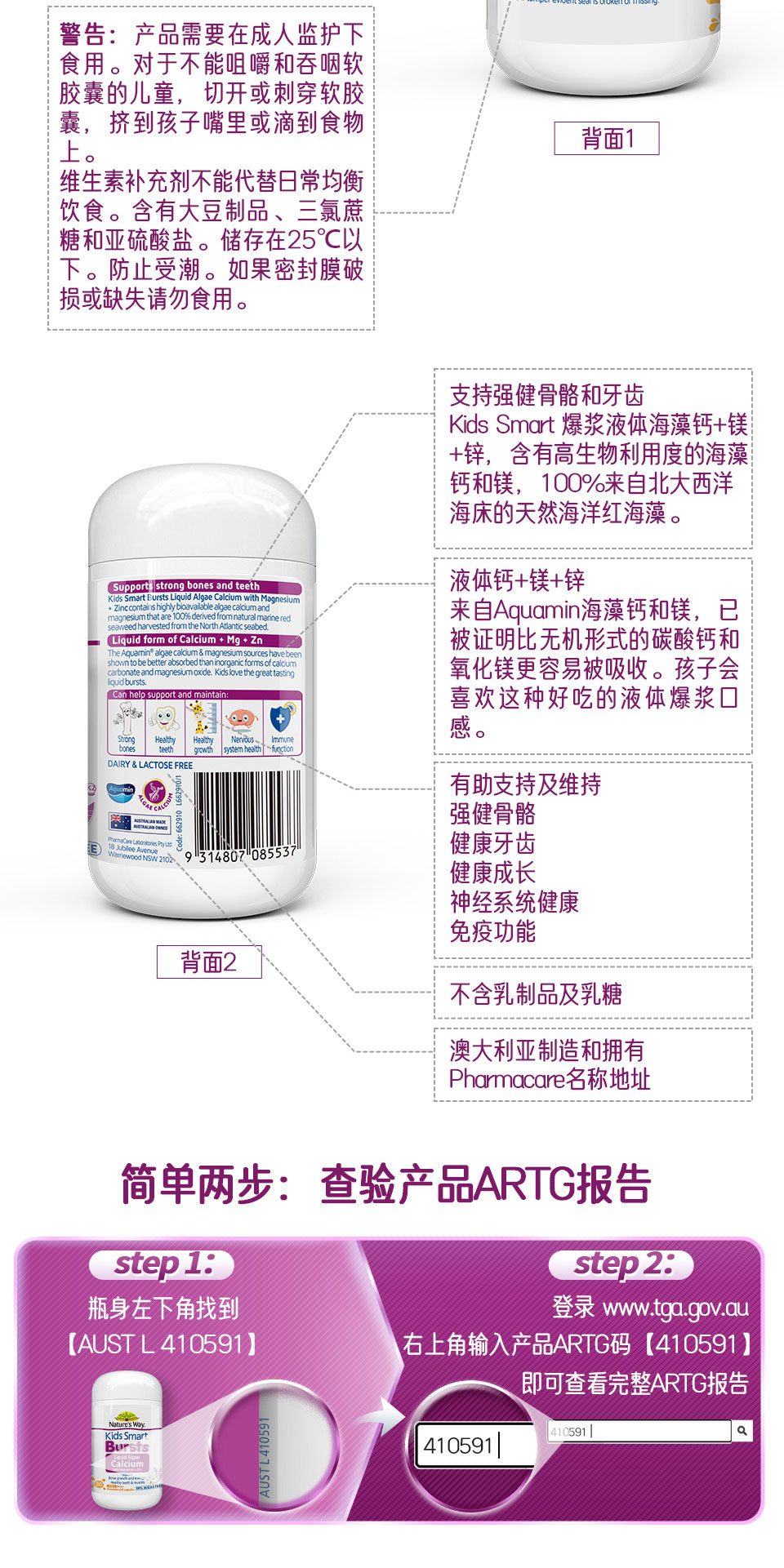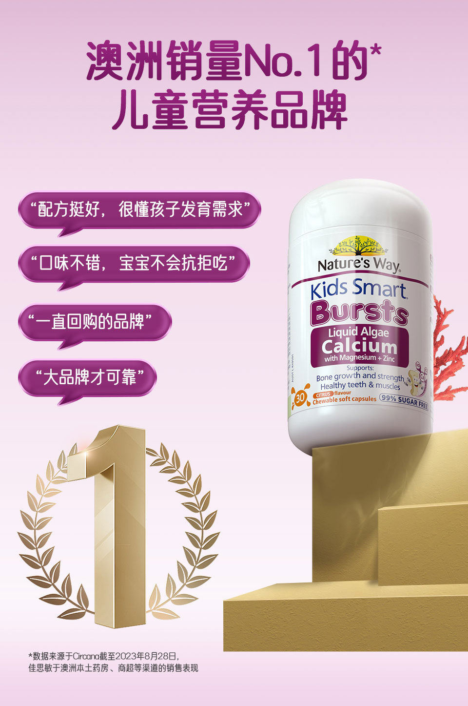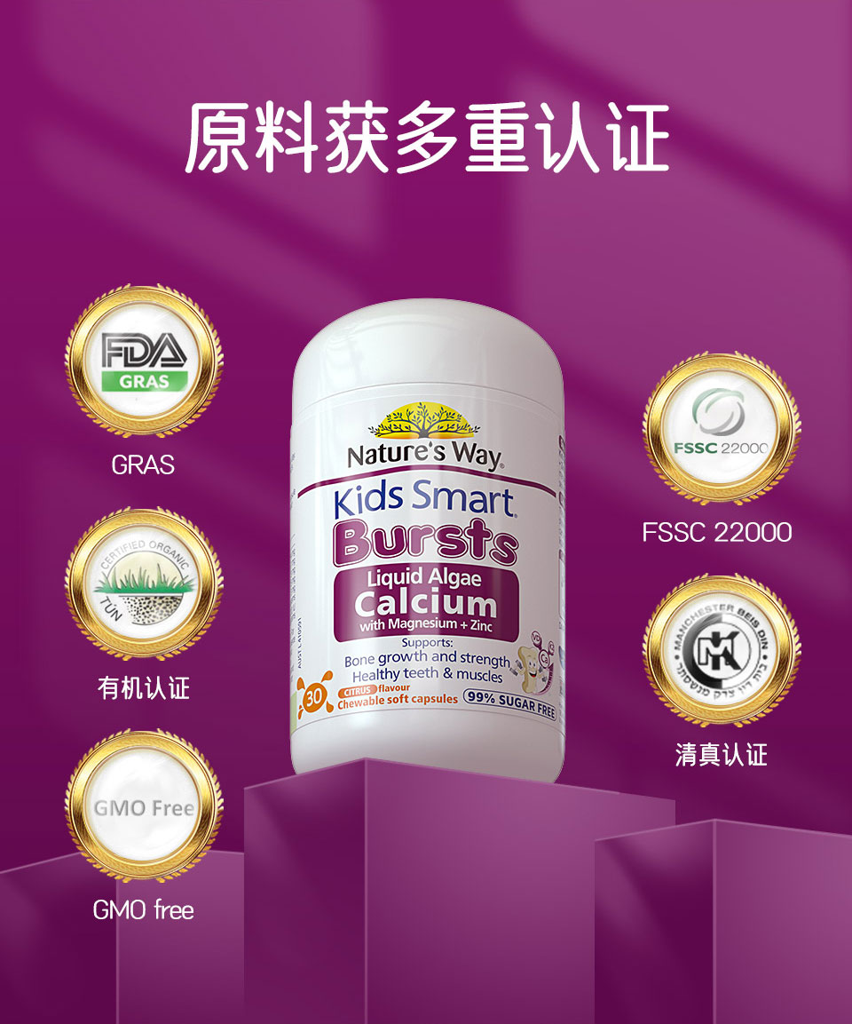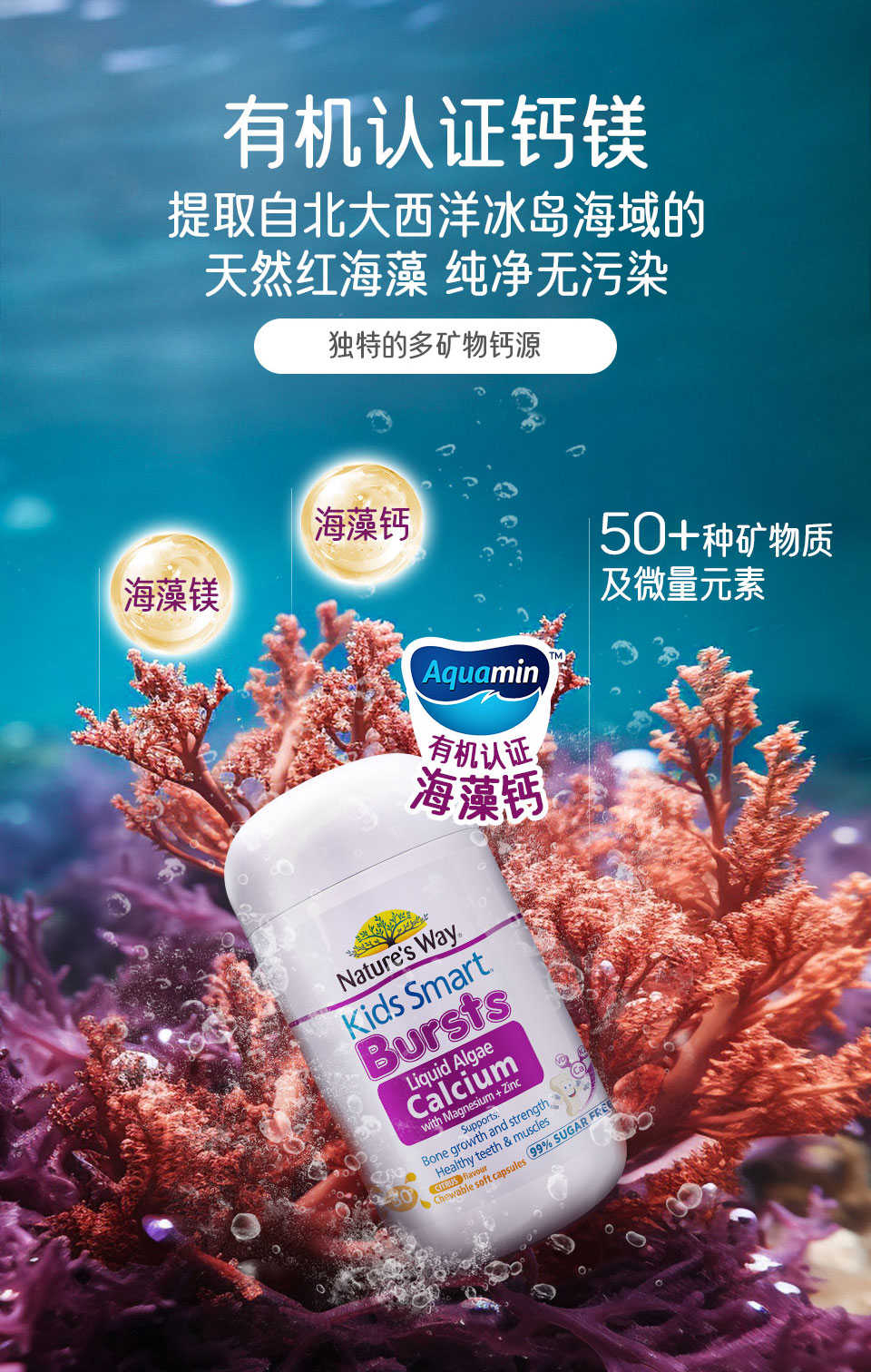 【跨境】Nature's Way佳思敏儿童钙+VD软糖60粒/瓶(效期:2026.10)