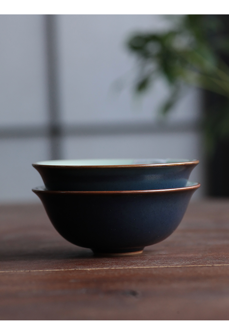 【问鼎】【黛蓝如意杯2入】景德镇茶盏小茶杯个人陶瓷茶具品茗杯单杯