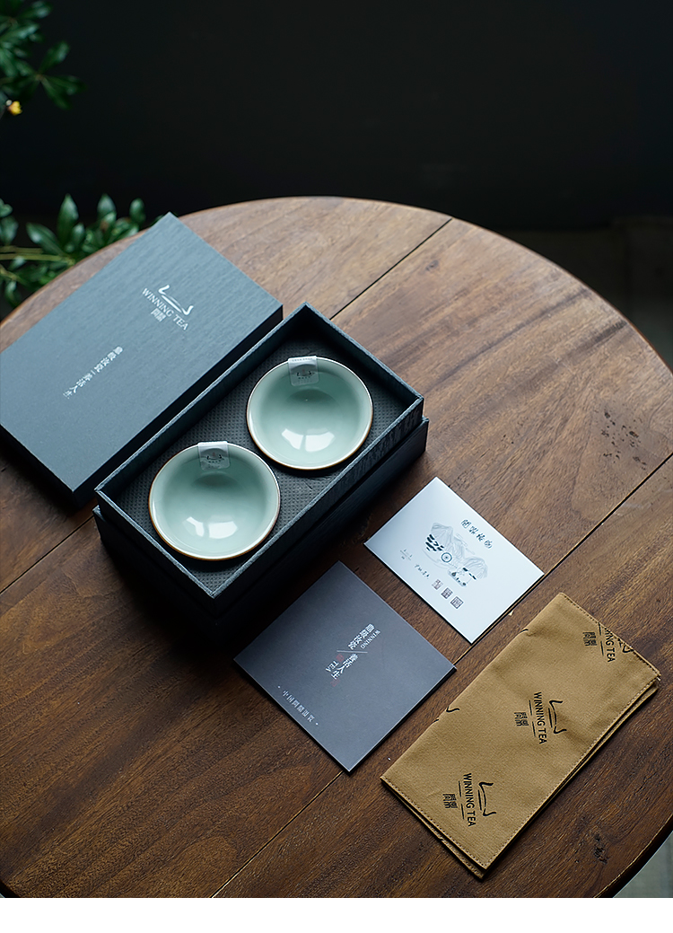 束刻/越窑艾草青/镜花盖置 越窑青瓷手工浮雕镜花盖置杯垫功夫茶具茶道配件文人器