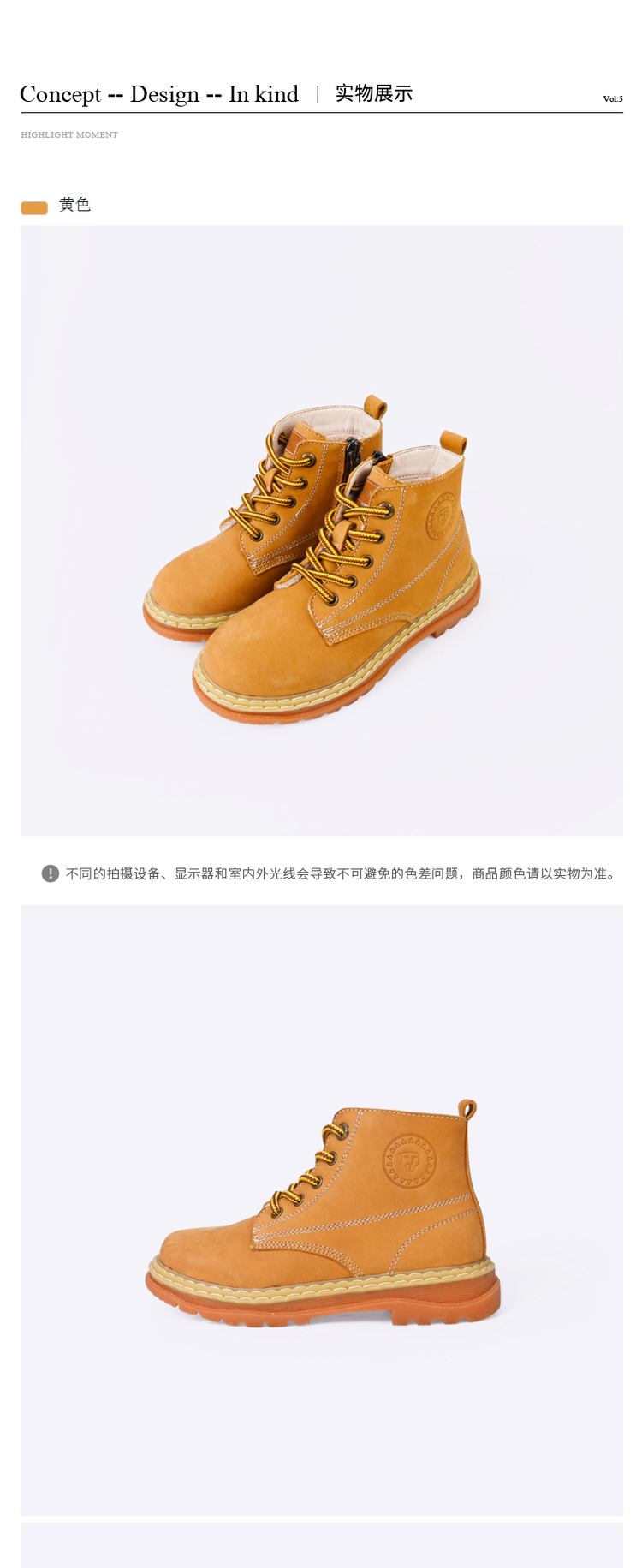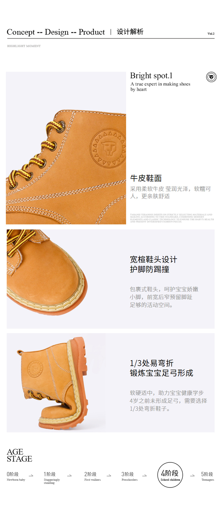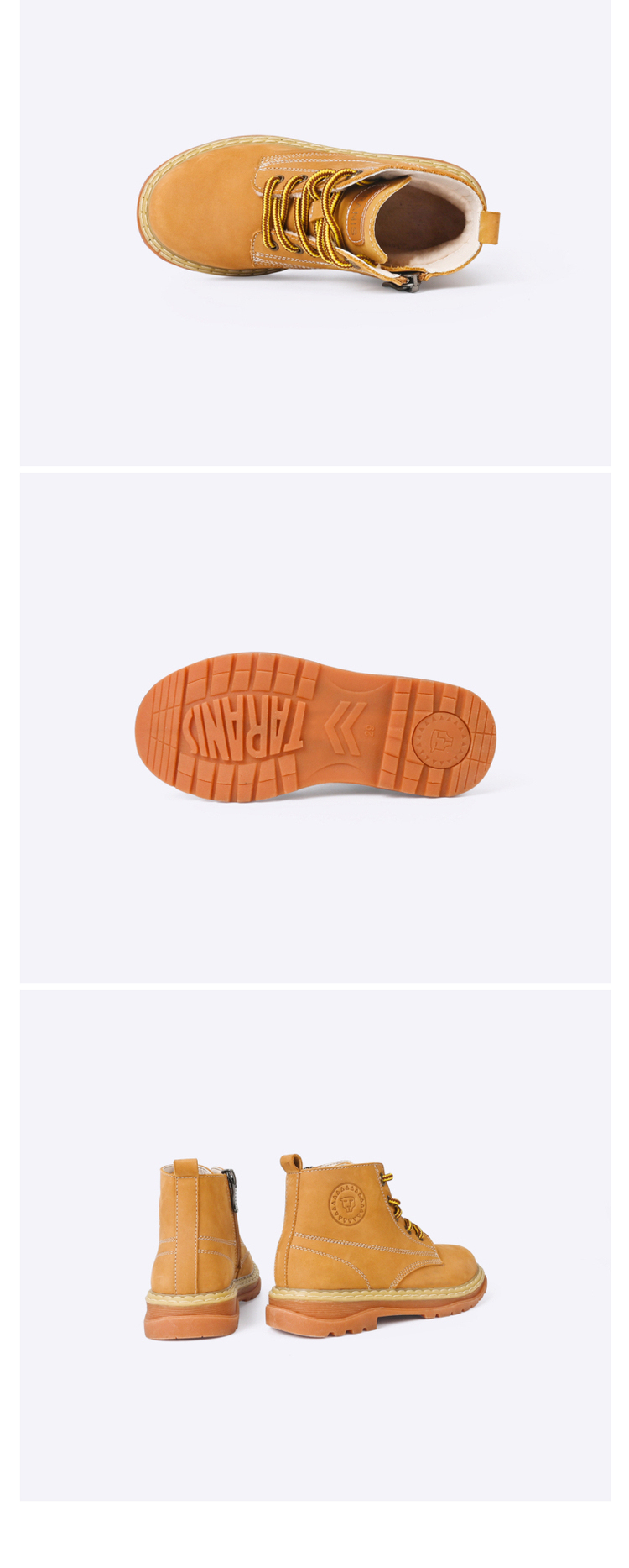 泰兰尼斯冬季新款儿童真皮马丁靴男童鞋子女童复古软底加绒短皮靴T04D1D1102
