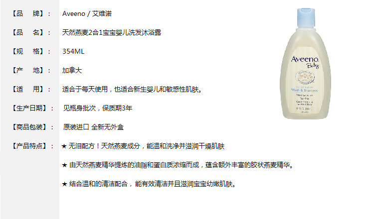 艾惟诺婴儿每日倍护洗发沐浴露(浅蓝)354ml