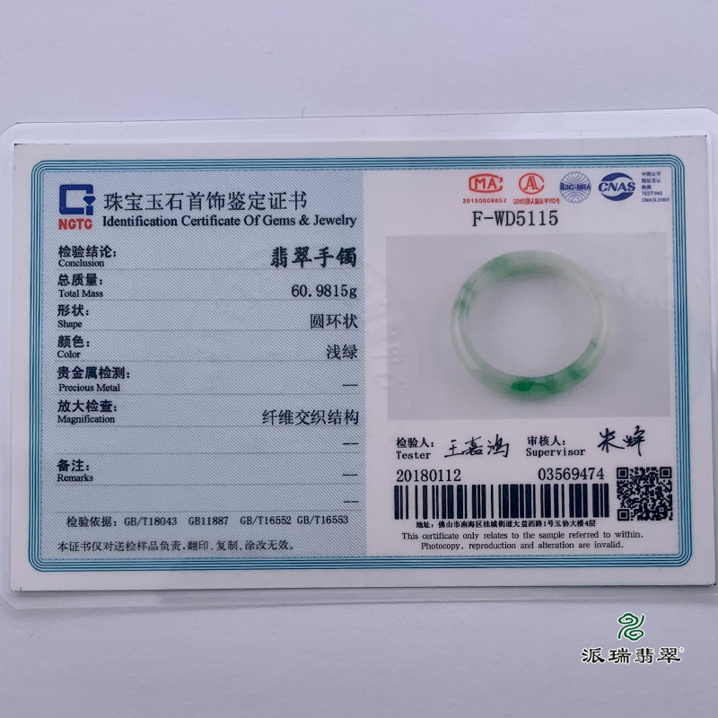 派瑞翡翠 翡翠手镯 糯种 浅绿