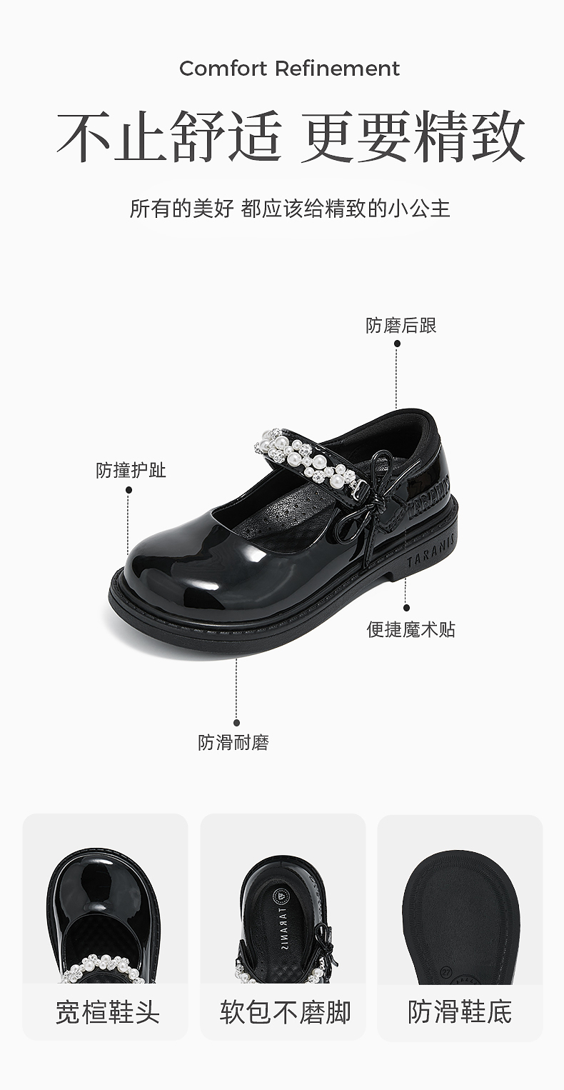 泰兰尼斯meta黑皮鞋春季新款亮面演出聚会鞋公主单鞋子轻便透气鞋 M03X5A6020