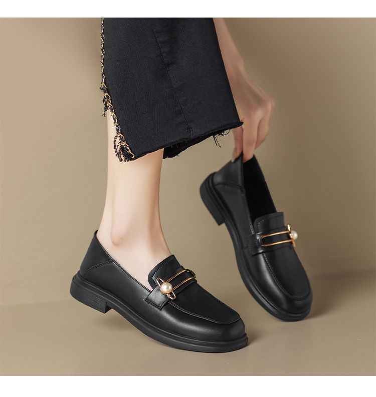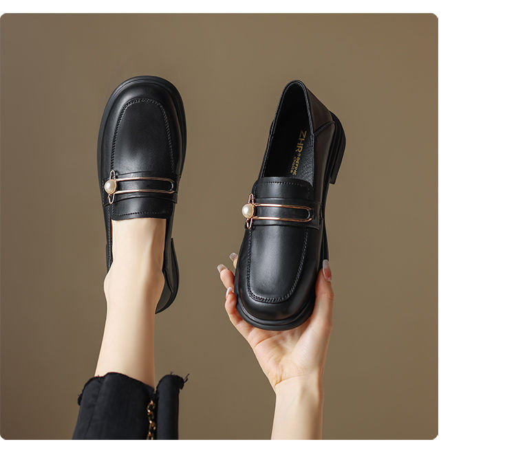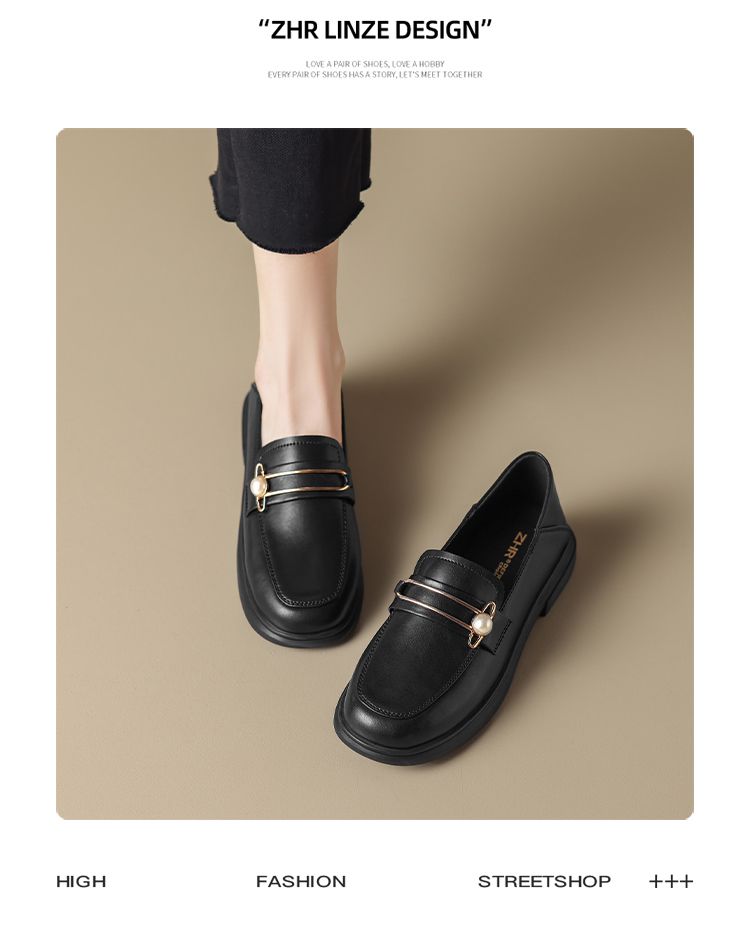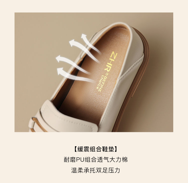 ZHR乐福鞋2023秋新英伦风小皮鞋豆豆鞋厚底女鞋一脚蹬平底单鞋女